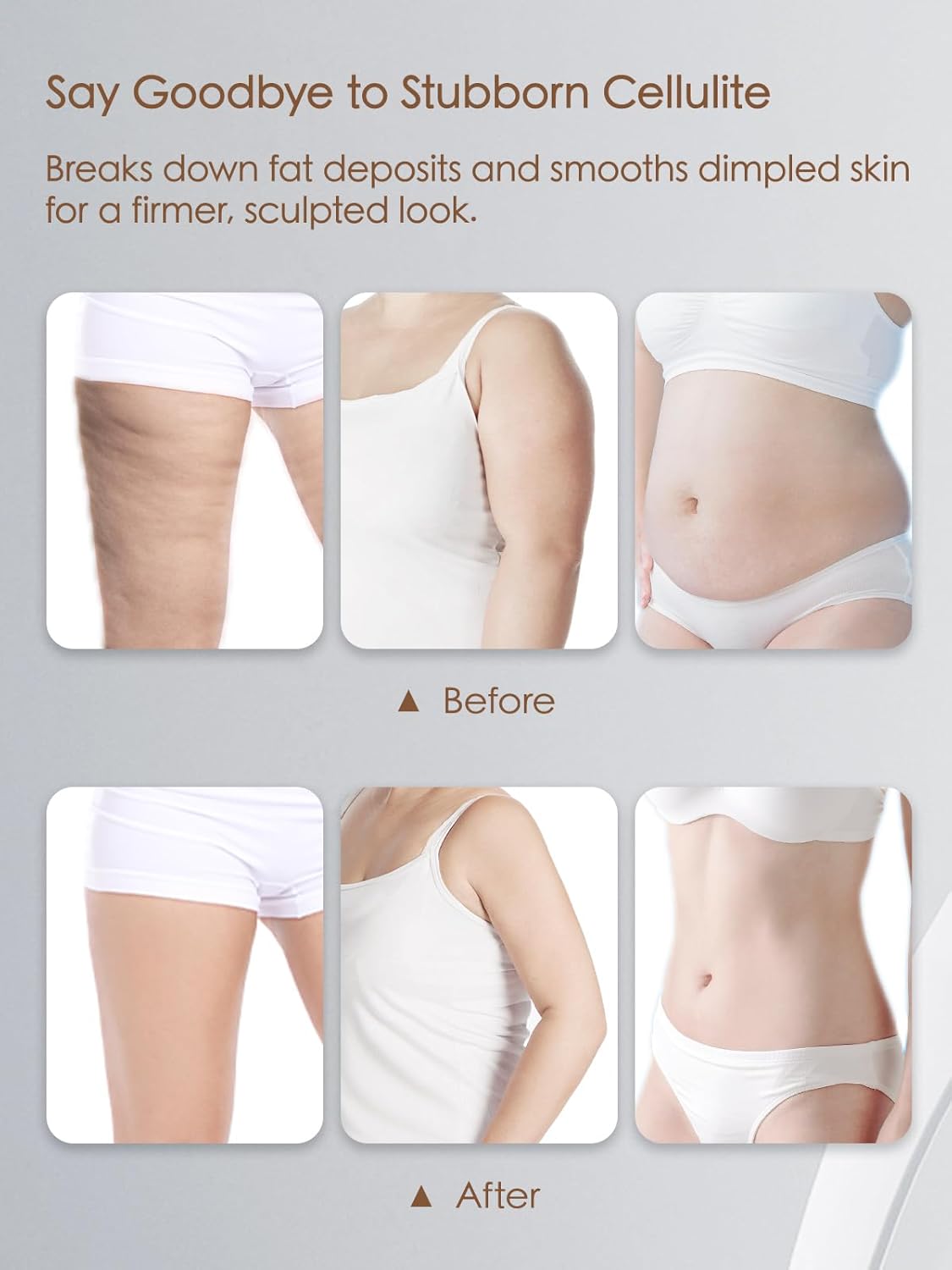 • Anti-Cellulite Technology – Smooth & Tighten Your Skin: This cellulite massager combines light, heat, vibration, and SoothingPulse to target stubborn cellulite & stretch marks. It boosts circulation, enhances collagen production, and improves skin elasticity, leaving you with firmer, more toned, and smoother skin. Ideal for legs, arms, stomach, thighs & waist.