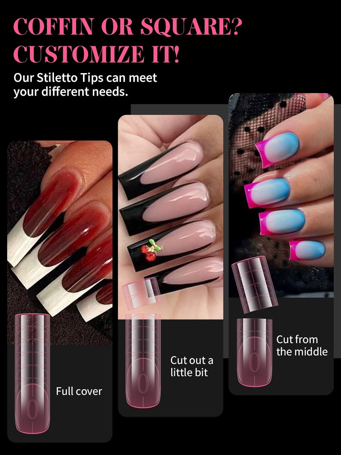 - 【Nail Form Mold with 14 Sizes】140pcs stiletto clear dual forms for poly nail gel offers 15 different nail sizes , and each size of long nail tips is separated by a small grid, a total of 15 grids, so they're easy and convenient to choose the suitable size to meet your nail's need.