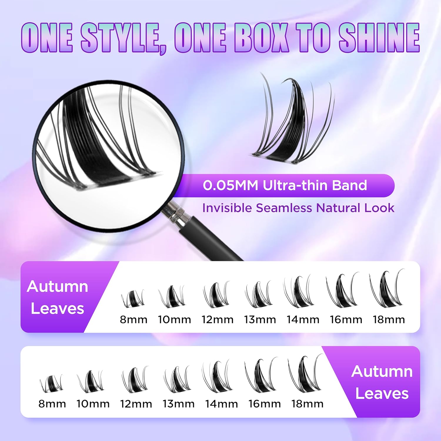 - 【Soft and Lightweight Lash Clusters Kit Waterproof】: The soft and thin band of wispy eyelash clusters is designed to be comfortable and easy to wear, with no stinging or burden on the eye;These natural cluster eyelash extensions can be worn for up to 48 hours, providing a comfortable and hassle-free experience
