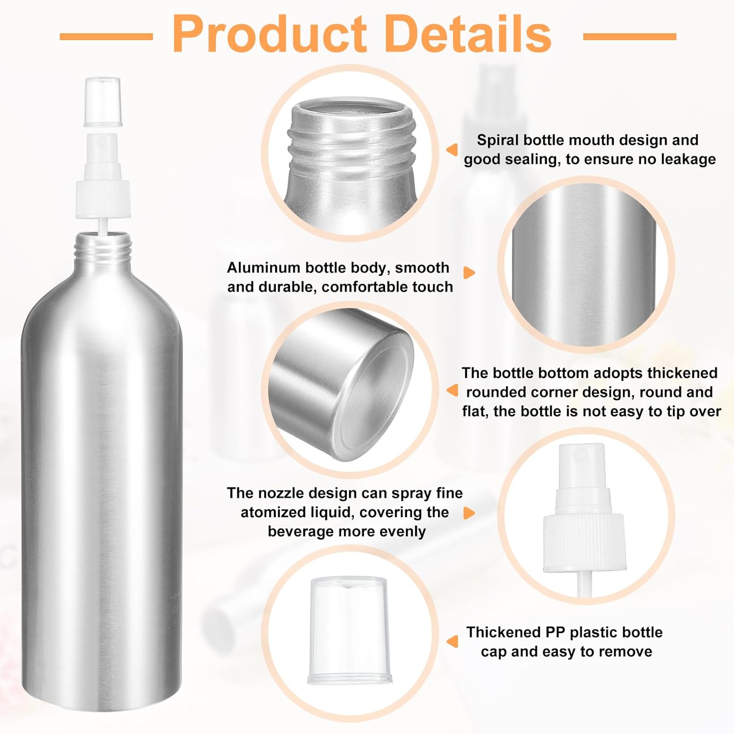 HARFINGTON 5pcs Aluminum Fine Mist Spray Bottles 500ml/16oz Metal Small Liquid Alcohol Refillable Travel Container with White Plastic Nozzle Cap for Perfume Skincare Cosmetic Storage Bottle