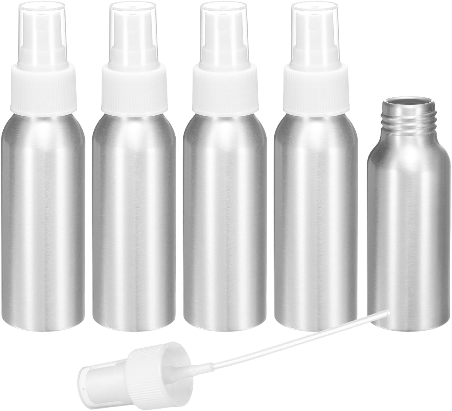 HARFINGTON 5pcs Aluminum Fine Mist Spray Bottles 80ml/2.7oz Metal Small Liquid Alcohol Refillable Travel Container with White Plastic Nozzle Cap for Perfume Skincare Cosmetic Storage Bottle