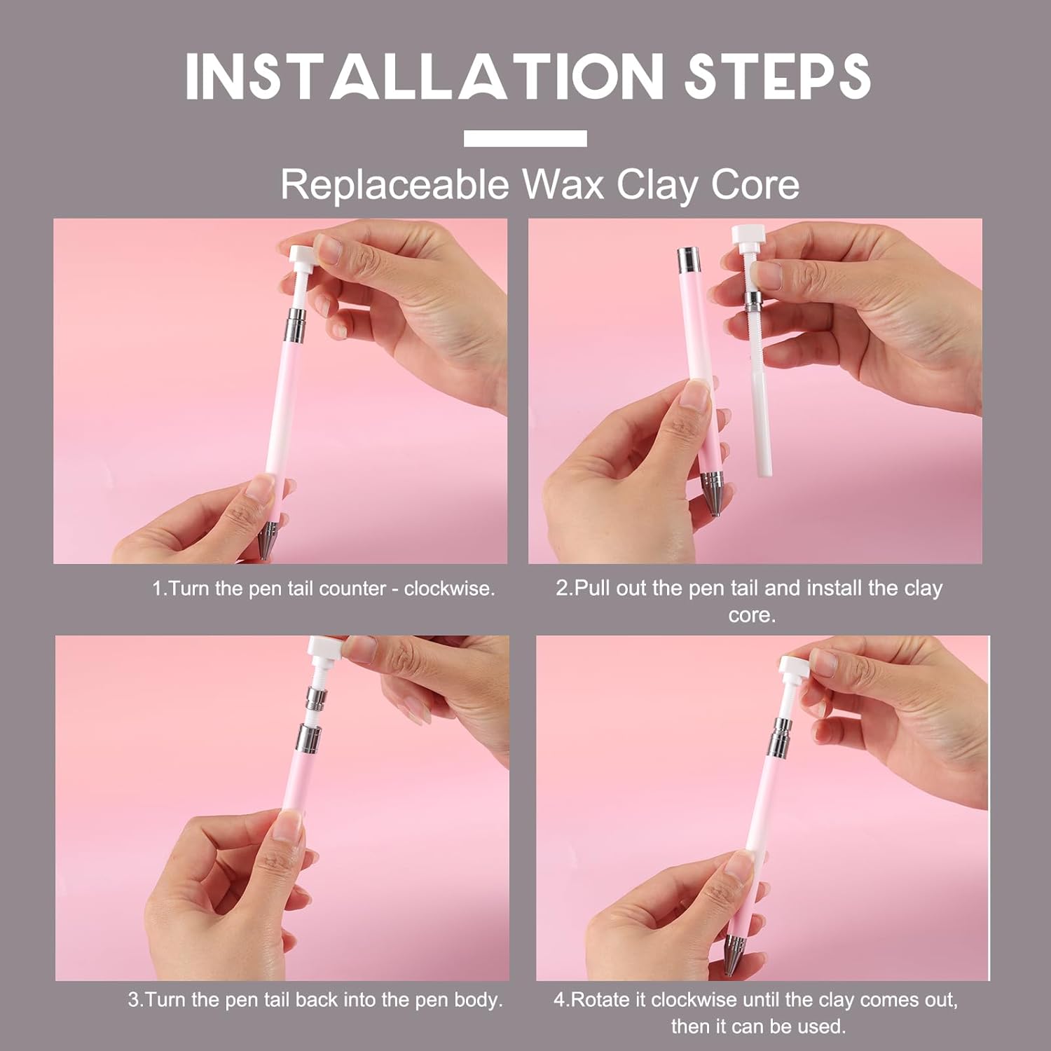 - EASY OPERATION - Our pink-to-white gradient nail art rhinestones dotting pen is user-friendly. Rotate the end to push the silicone clay pen tip for picking up rhinestones, crystals, and more. The self-adhesive tip ensures precise placement.