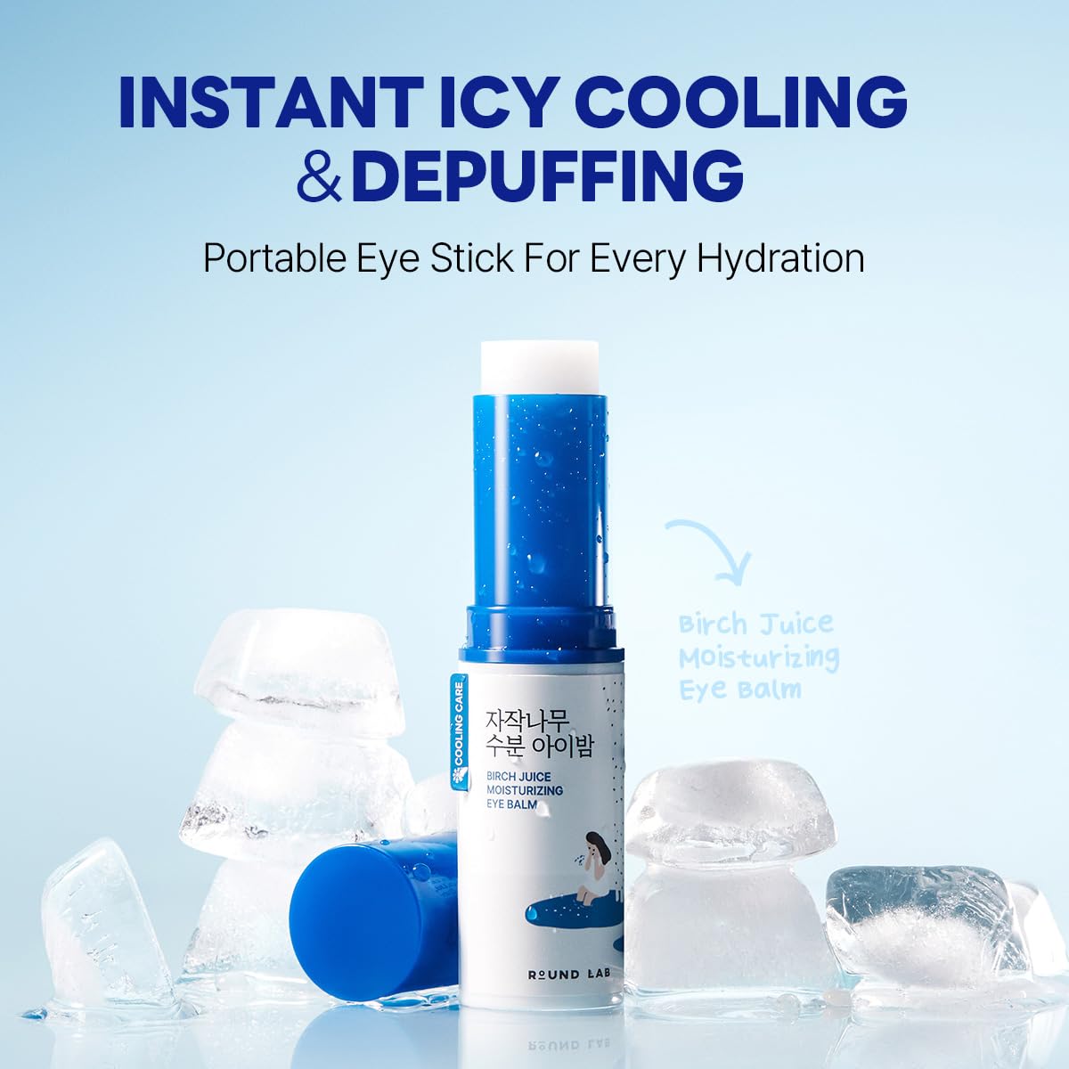ROUND LAB Birch Juice Icy Cooling Eye Stick – Depuffing Glow Booster Balm for Puffy Eyes, Dark Circles, Fine Lines | On-the-Go Moisturizer | Korean Skincare | 0.35 oz