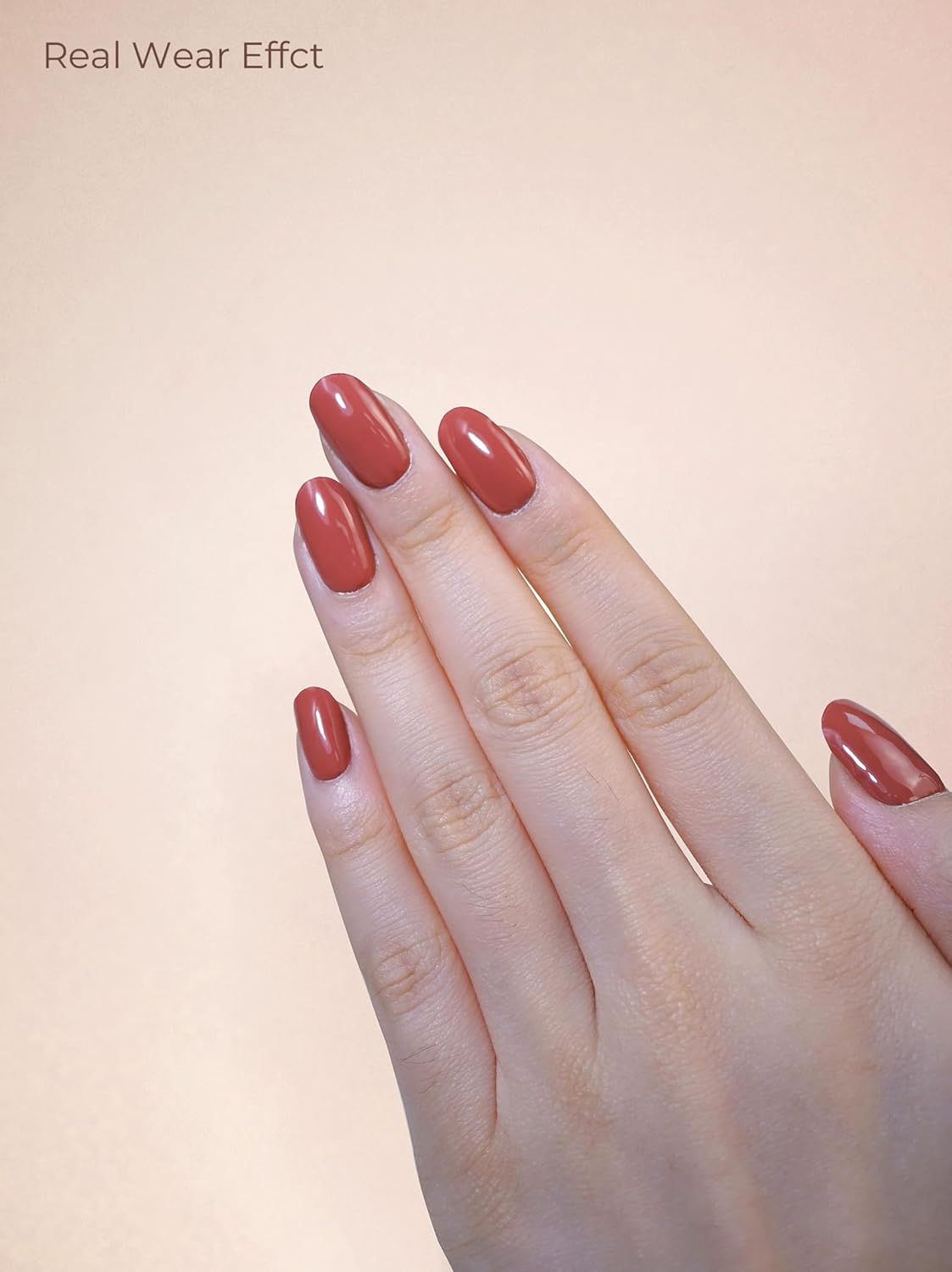 Pre Cured Gel Nail Strips - 44PCS Salon Quality Gel Nail Stickers - Long Lasting Polish Wraps for Women no UV Light Needed Easy Apply& Remove (Oxblood Brown)