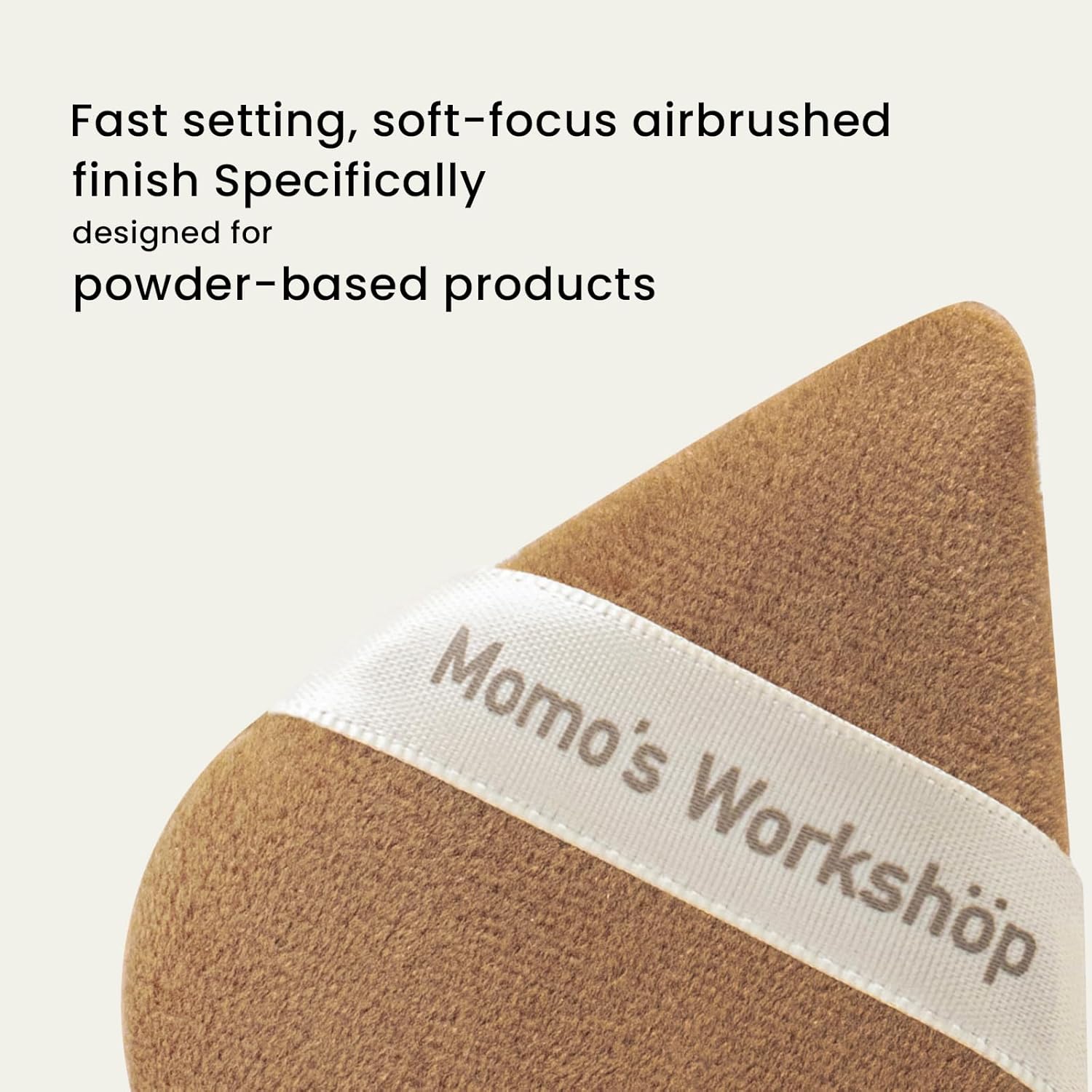 Momo's Workshop Pointed Powder Puff Large Size - Narrow Tip for Precision, Egg-Shaped Base for Even Application, Double-Sided Short Fluff, Works with Powder/Blush/Highlighter,Storage case,3PCS Puffs