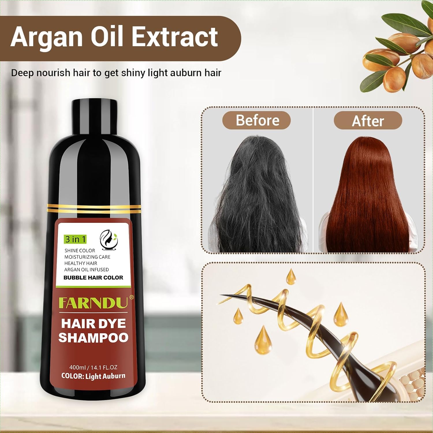 Light Auburn Hair Dye Shampoo for Women Men Gray Hair Coverage and Herbal Ingredients 3 In 1 Hair Color Shampoo