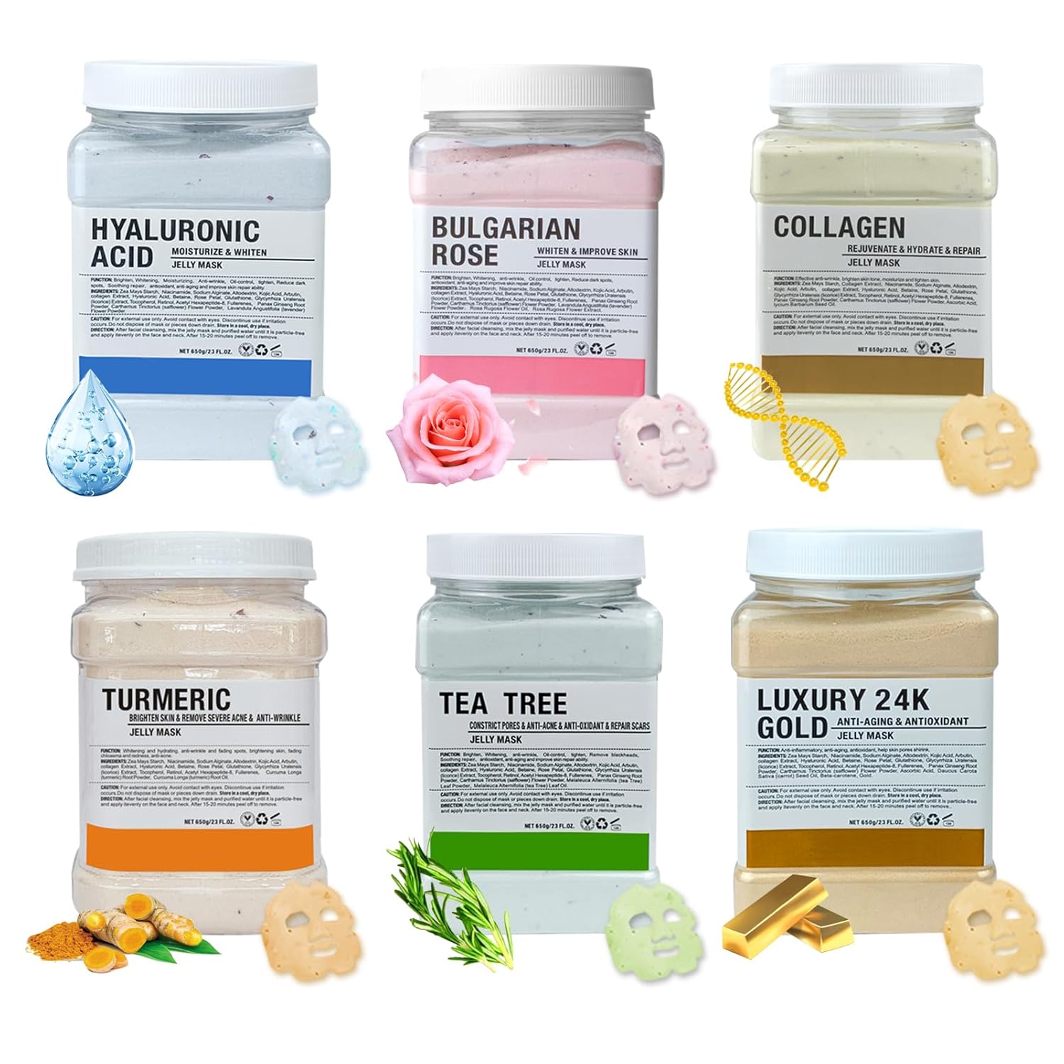 Jelly Mask for Facials Professional, Hydrating & Moisturizing Peel-Off Natural Gel Face Mask SkinCare, Professional Spa Use Jelly Face Masks, Deep Hydration & Glow 23 Fl Oz (6 Pack)