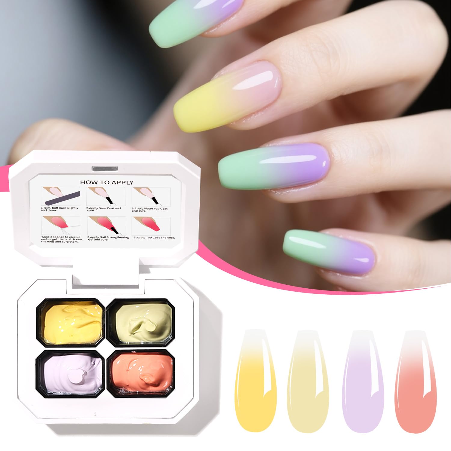 Finger Secret 4 Colors Ombre Gel Nail Polish Set Gradient Pat Painting Gel Ombre Color Palette with 20Pcs Nail Sponges for Nail Art DIY Salon or Home Use(k7)