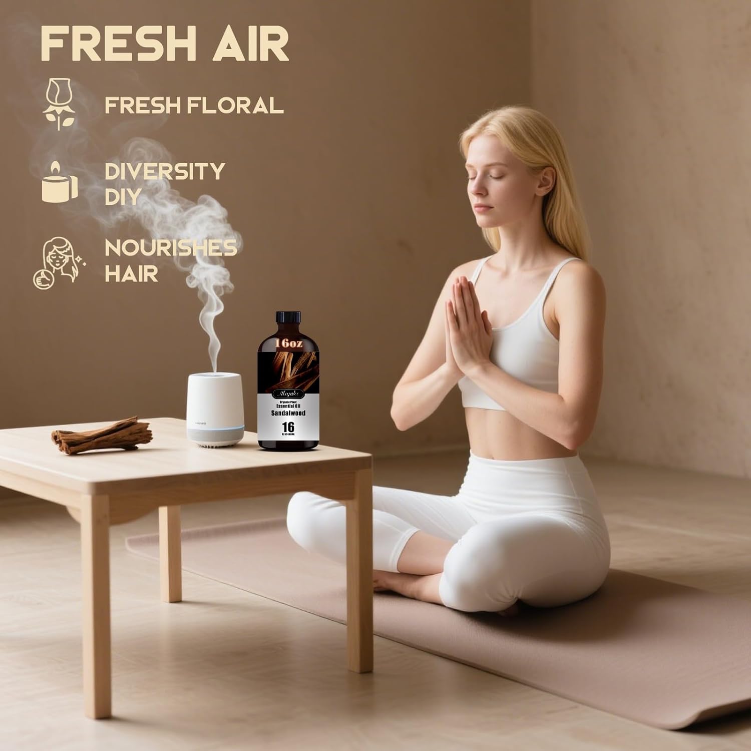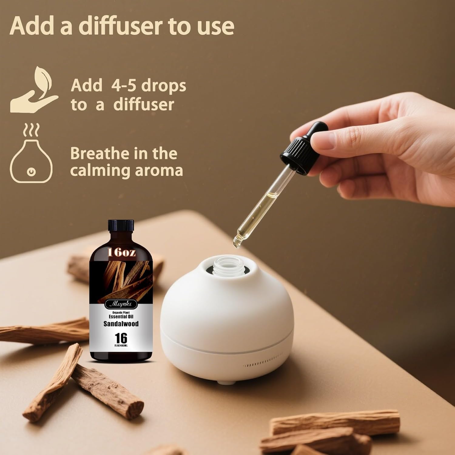 Sandalwood Fragrance Oil-Sandalwood Essential Oil 16.33oz (490ml)-100% Pure Natural Scent for Diffusers, Candles, Soap Making & Aromatherapy-Relaxing Home & Gift Essential Oil for Bath, Massage