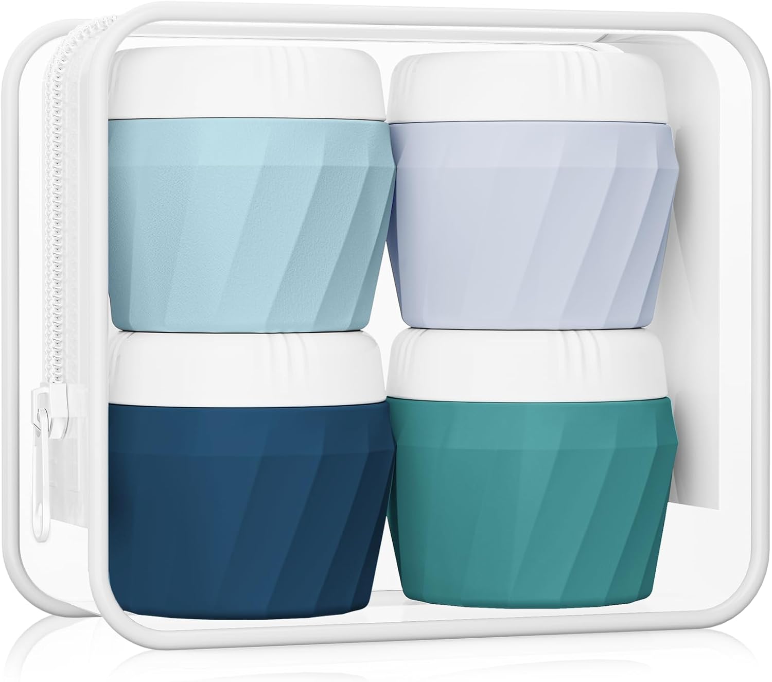 - 【TSA CARRY-ON APPROVED】4pcs Travel Containers for Toiletries, compact size fits in your pocket, handbag, backpack, and suitcase, ideal for travel, gym, camping, and the beach