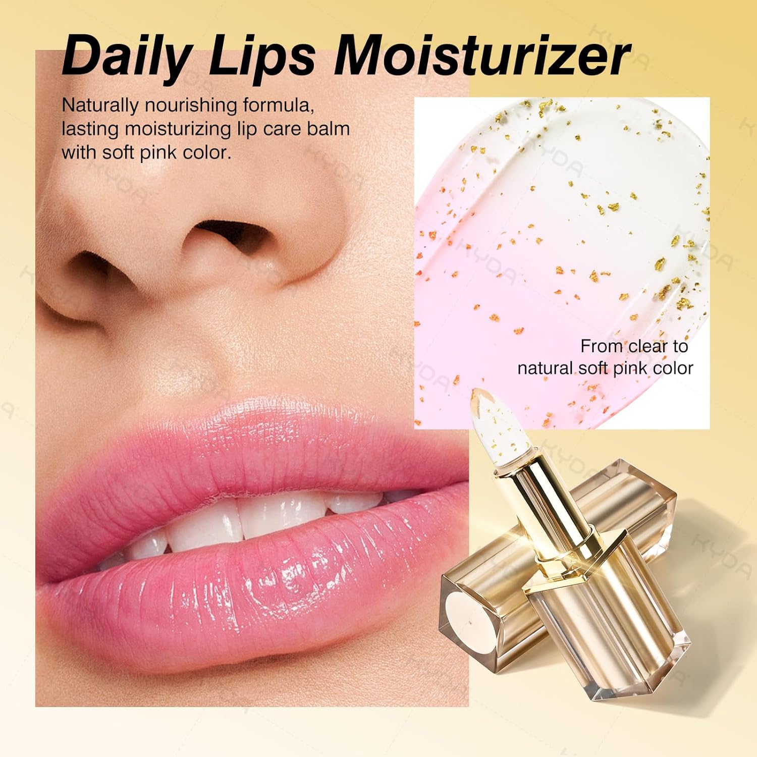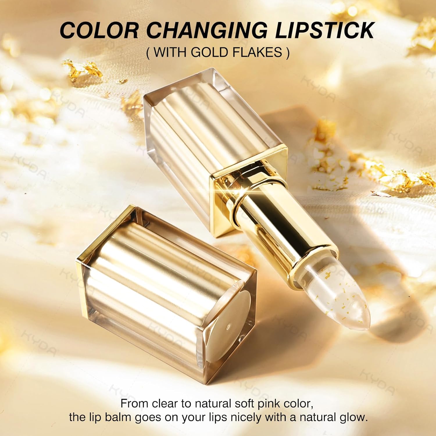 KYDA Transferproof Color Changing Lipstick with Gold Flakes, Changes from Clear to Sheer Pink, Moisturizing Tinted Lip Balm, Deep Nourishment, PH Changing Lipstick, Glossy Shine Lip Balm