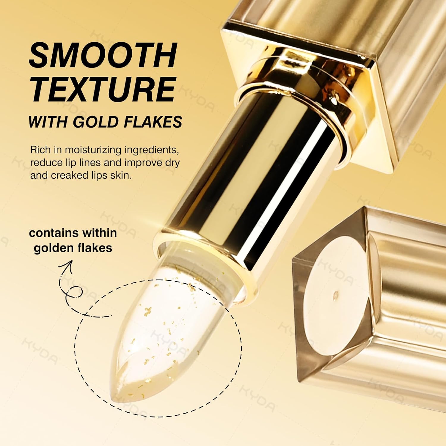 - 【Smooth Texture with Gold Flakes】Soft and comfortable texture, contains within golden flakes, and rich in moisturizing ingredients, reduce lip lines and improve dry and creaked lips skin.