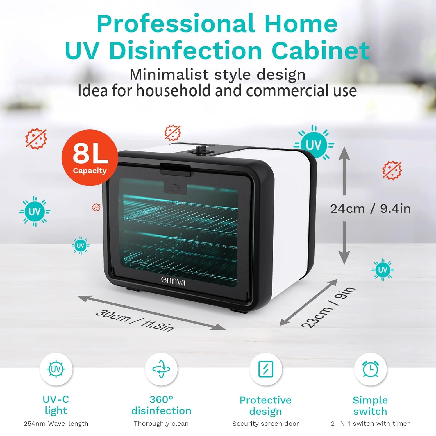 ENNVA UV Sanitizer Box Large - UV Light Sanitizer Box - Nail Tool Cleaning Machine - Ultraviolet Disinfection Cabinet for Phone, Toys, Nail Salon Tool - White