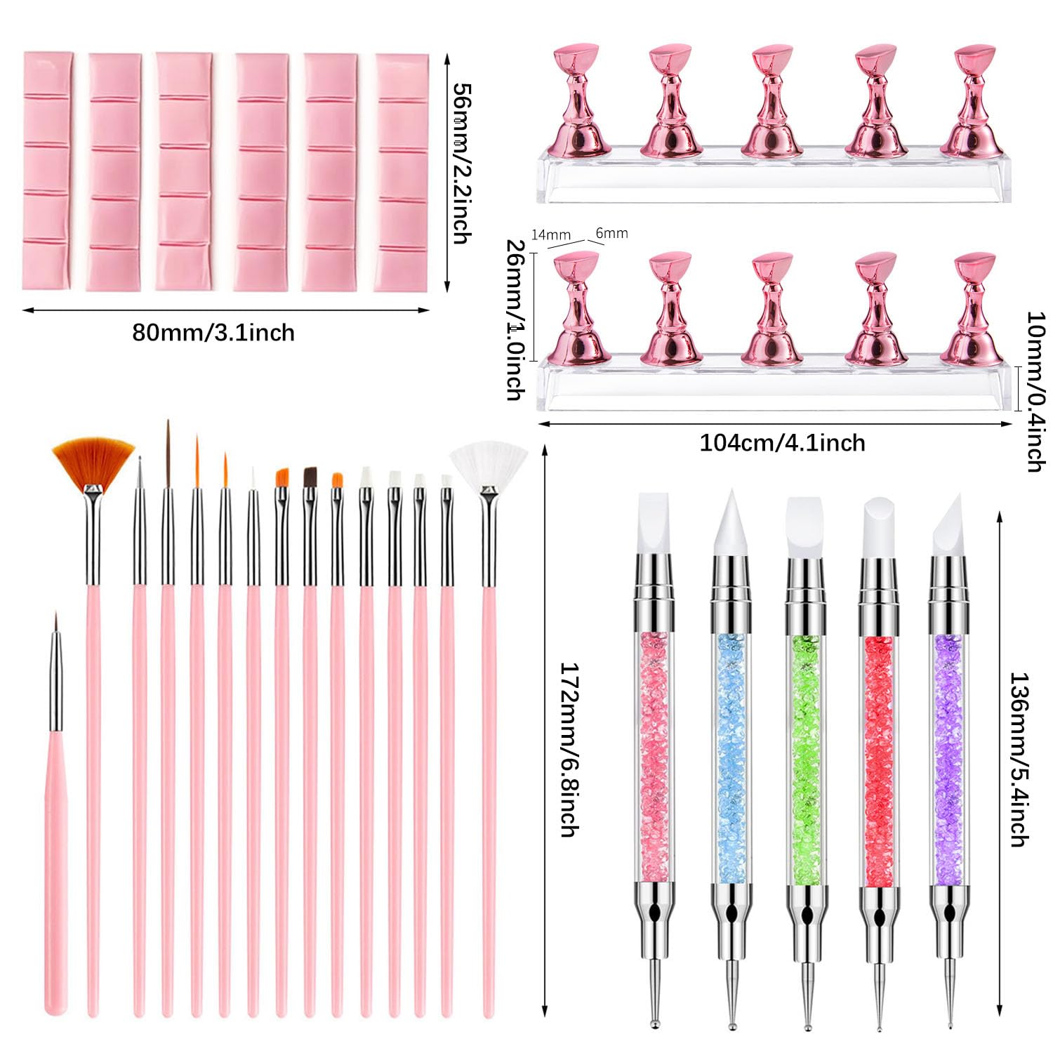 - 【Nail Art Brushes Set】15pcs Covers the range of brushes you will need, different brushes for different functions, some for-dotting flowers, and others for drawing lines or painting.