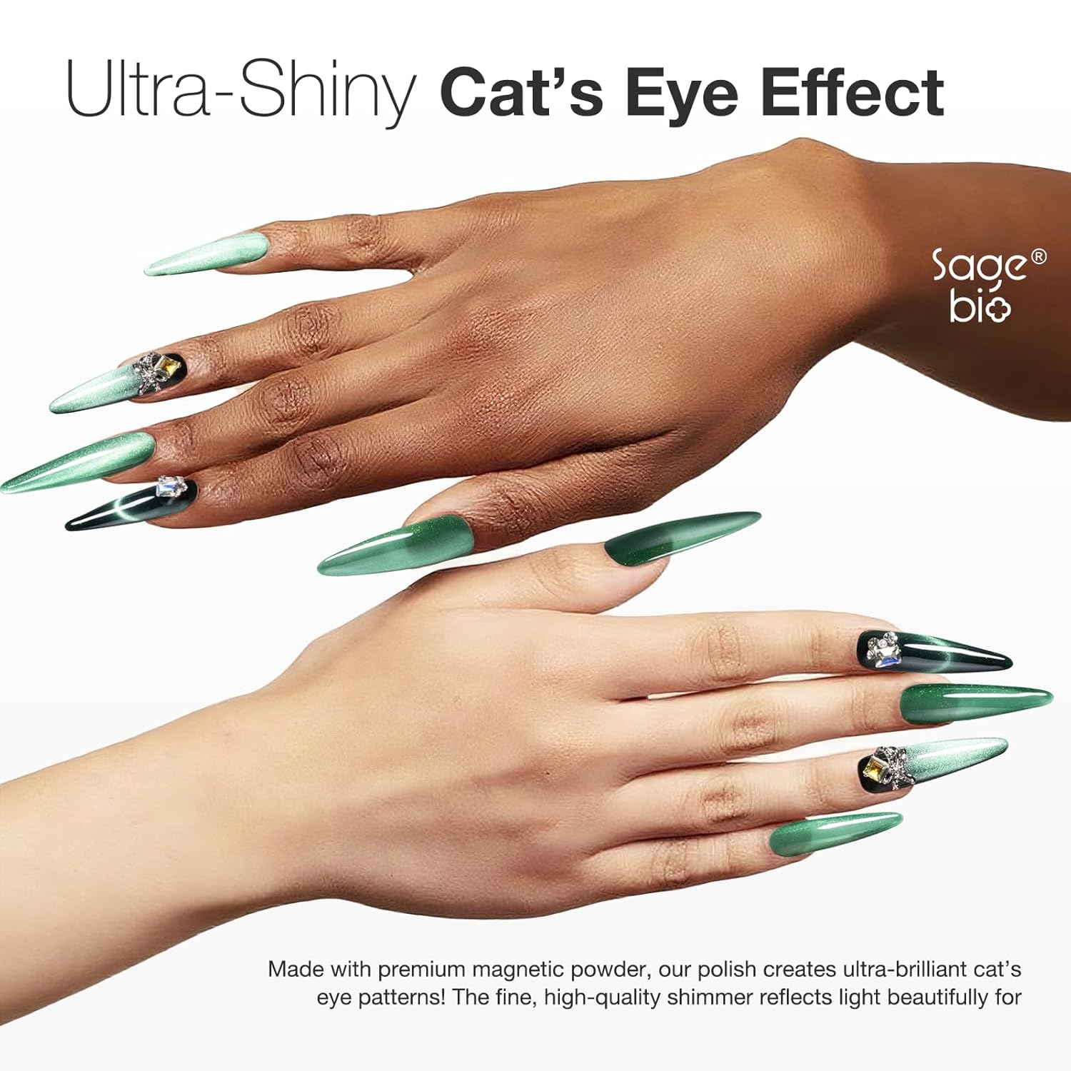 - Single Bottle, Salon Size: Includes one 15ml/0.5oz bottle of SAGEBIO Cat Eye Gel Polish. Use with magnet and different base colors to create unique shimmering nail effects. Customize your style from soft to bold.