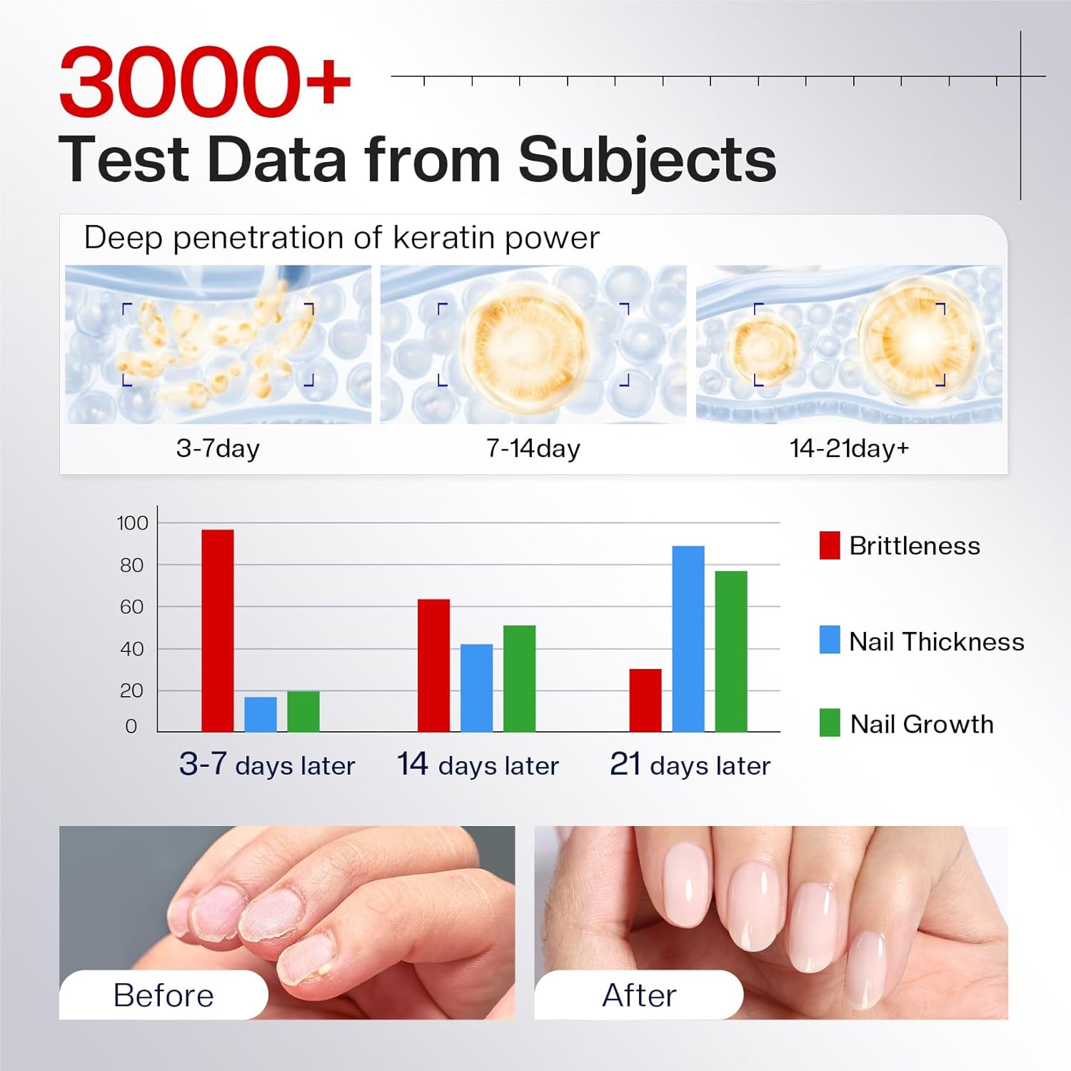 - Nail Hardener: Tested 10w+ samples, effectively proved to nail strengthen for damaged nails, nail repair, add âcalciumâ to improve work, housework, remove nail art caused by thin, brittle, cracked nails, reduce discoloration, make nails smooth, and back to nails health.