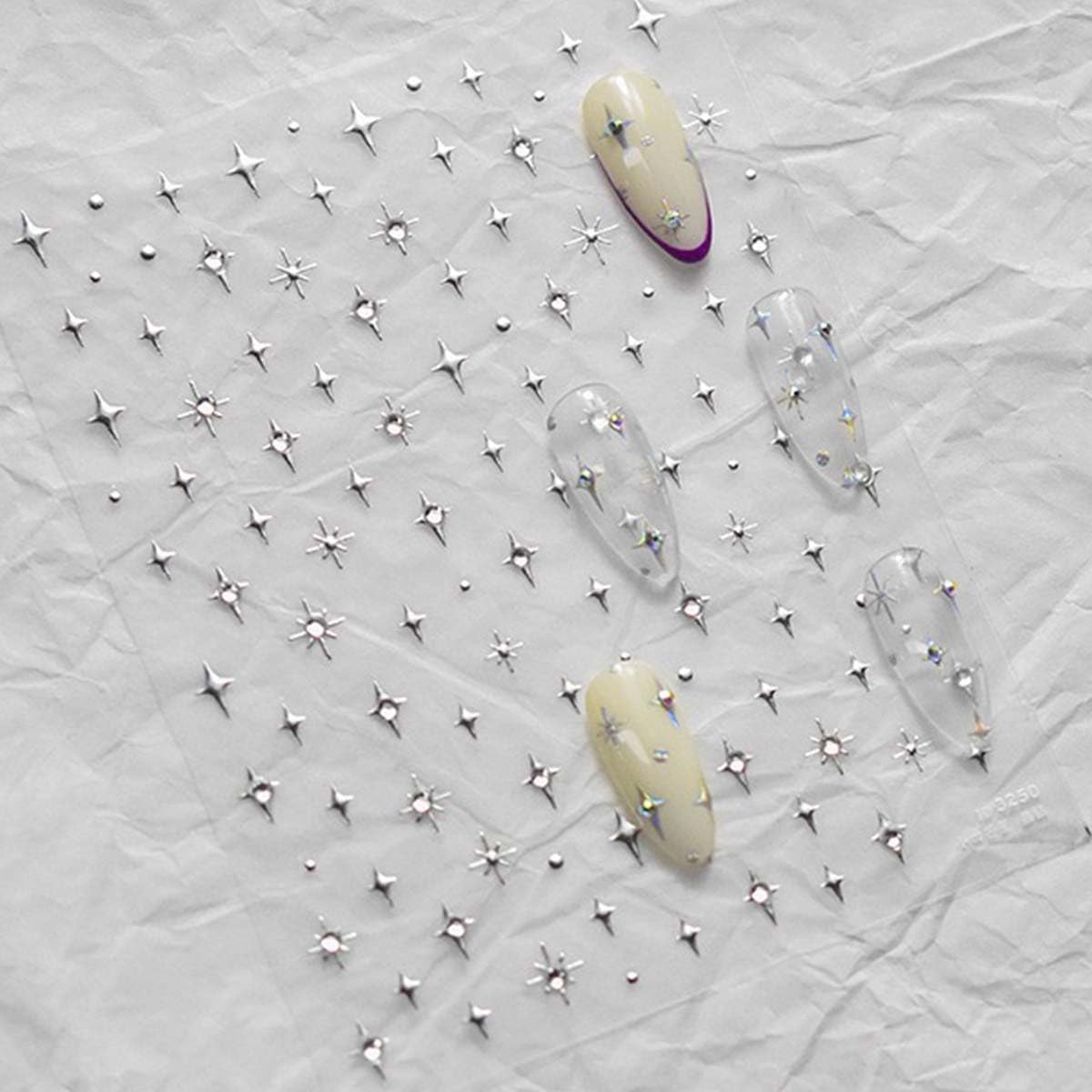 - Present:The best gift for your female friends, your mom, your wife. star sliver rhinestone nail stickers are great for your fingernails,nails decorations, home use and nail salon