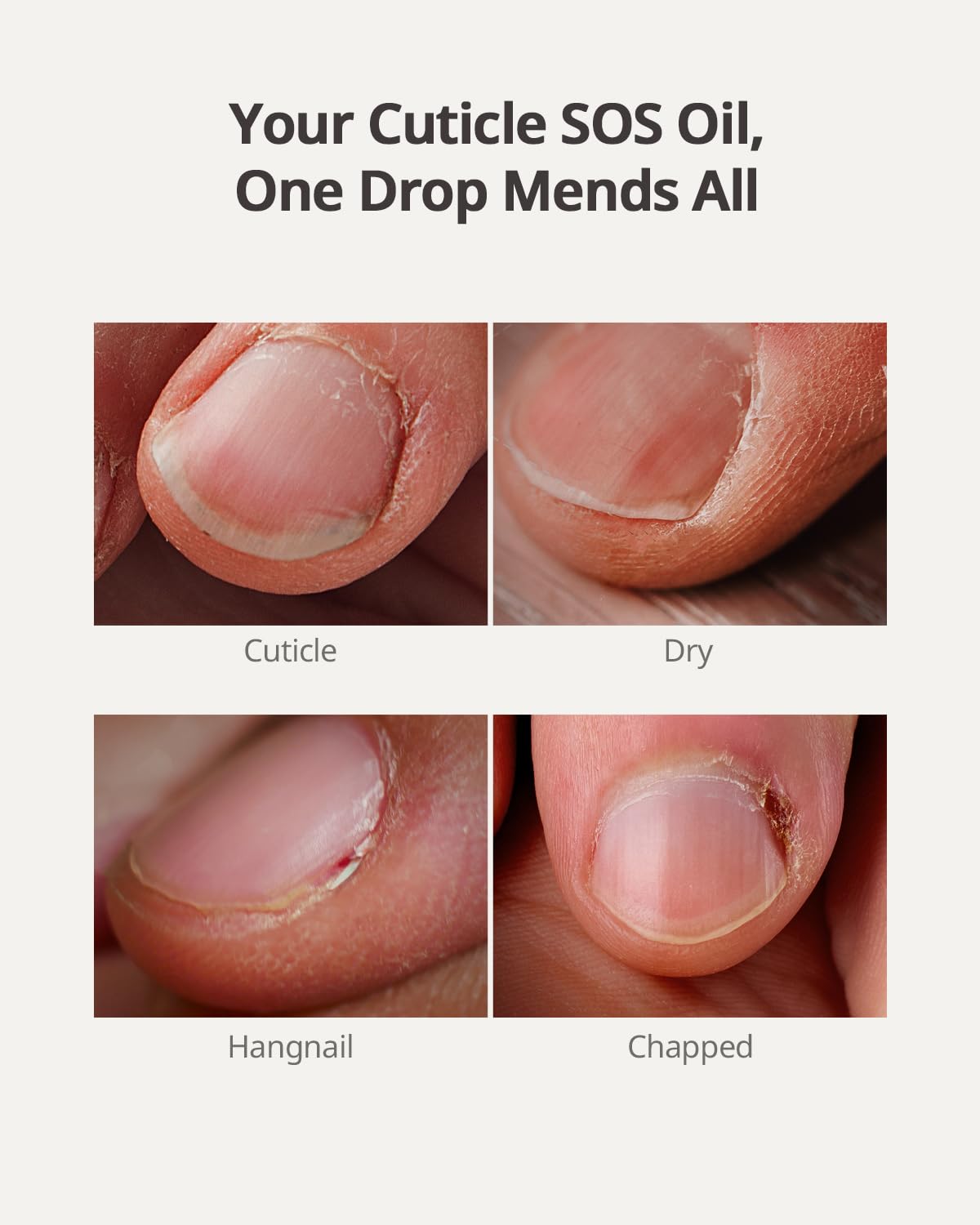 - YOUR CUTICLE SOS OIL:The 24-Hour Intensive Rescue for Damaged Cuticles. Repairs 7 major cuticle concerns: hangnails, xerosis cutis, onychoschizia, paronychia, brittle edges, keratin cracks & periungual peeling.