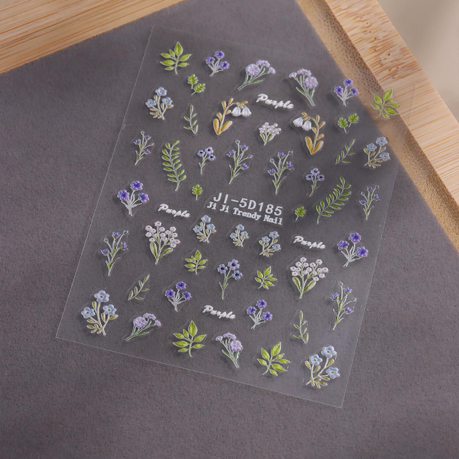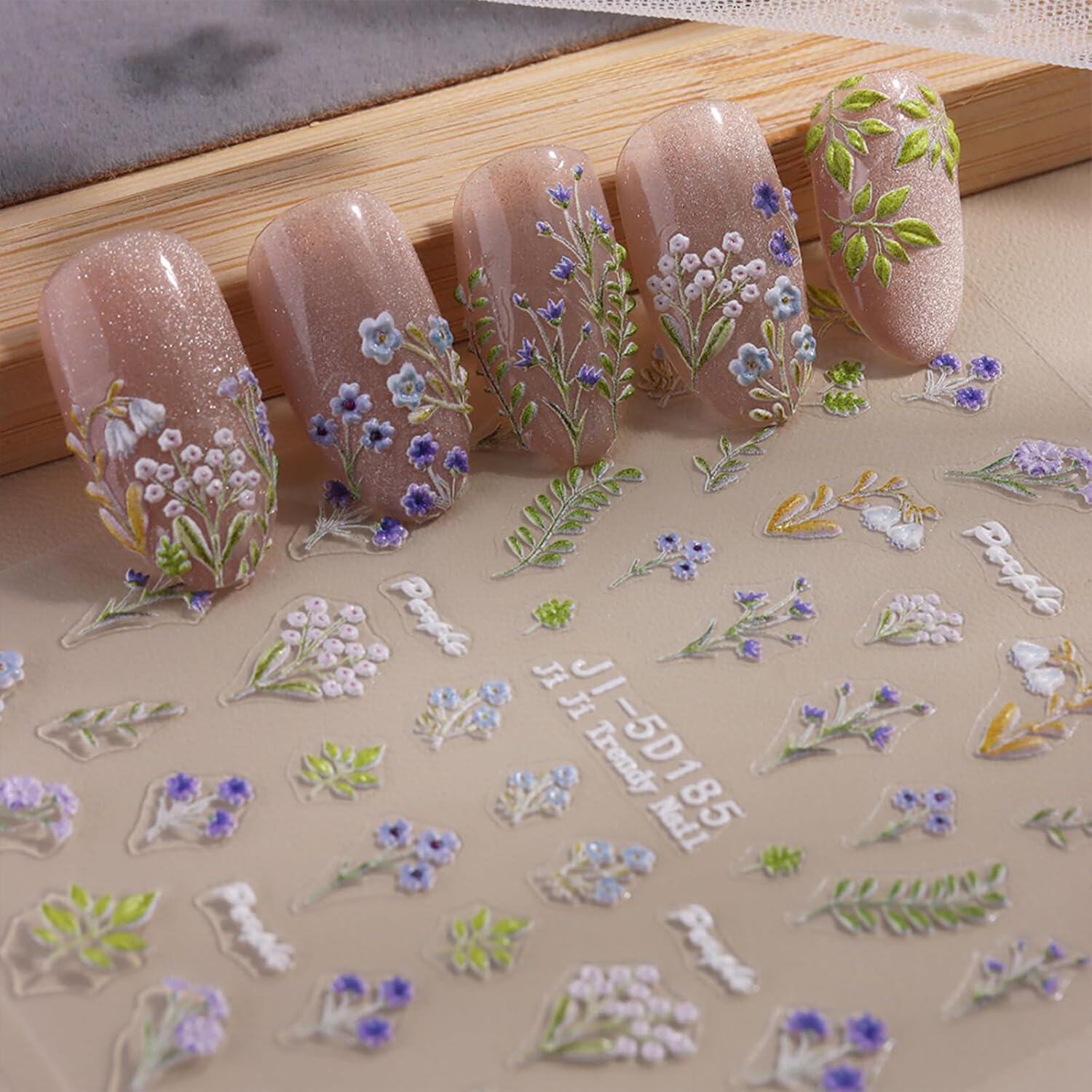 - Flower Nail Decals: 1 sheet of 5D embossing carving patterns litter fresh petal flower plant nail stickers give people an intuitive and advanced exquisite feeling. Floral five-petal flower plant elements summer design nail decals are perfect for decorations for your spring summer nails.