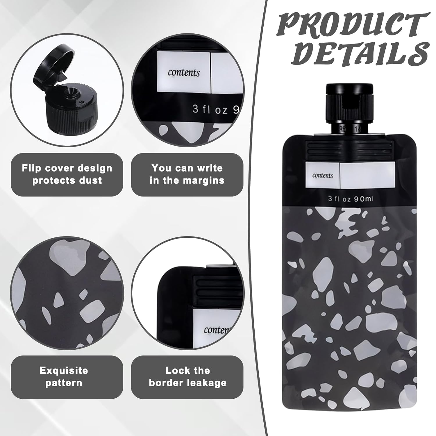 3 oz 6 PCS Refillable Size Containers Leak Proof Empty Squeeze Pouches Travel Shampoo Containers Pouches Travel Pouches for Toiletries for Shampoo Conditioner Face Cream Hand Soap(Black)