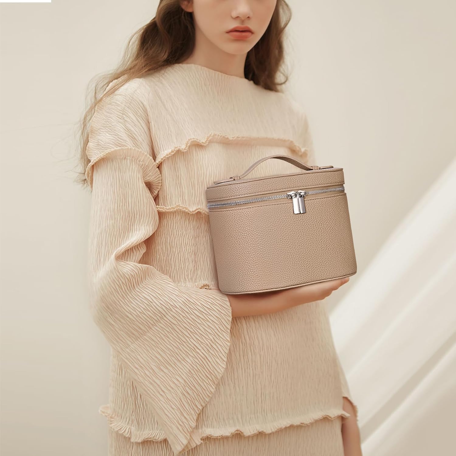 - Makeup Travel Case: The makeup organizer bag is made of PU leather, which is good in texture and durable to use, the leather surface is easy to clean.