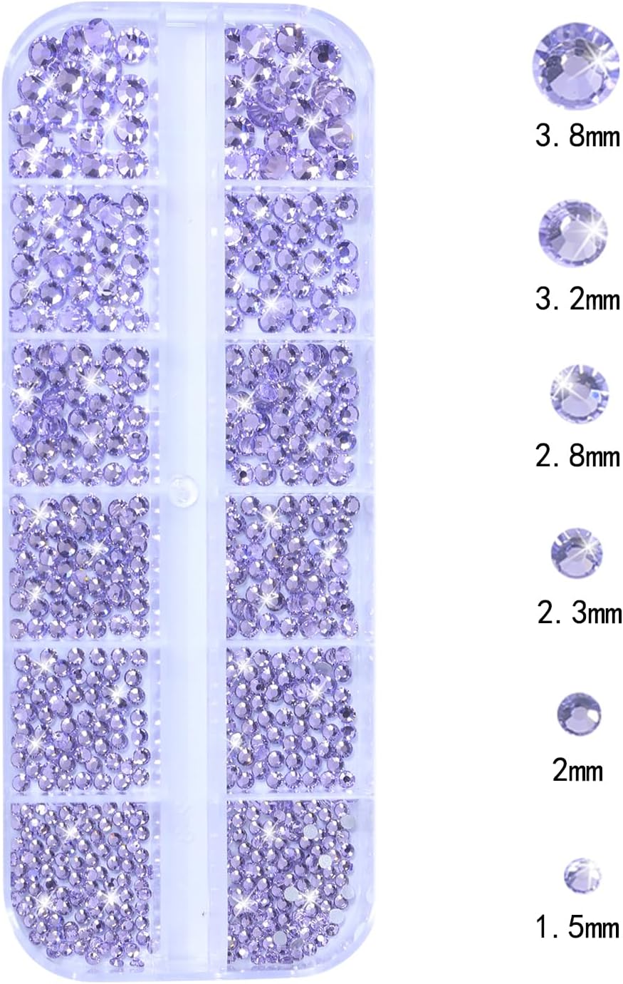 - ★Multi sized - Light Purple Rhinestones for nails decorations accessories are perfect for creating 3d nail Art or decorating jewelry, makeup, body Art, diy crafts, wedding dress or shoes, cell phone cases, glasses, greeting cards, bags, guitars, scrapbooks, etc., the mixture of different sizes makes it easier to achieve different designs of nail art,which add sparkle and glamour to your crafts.