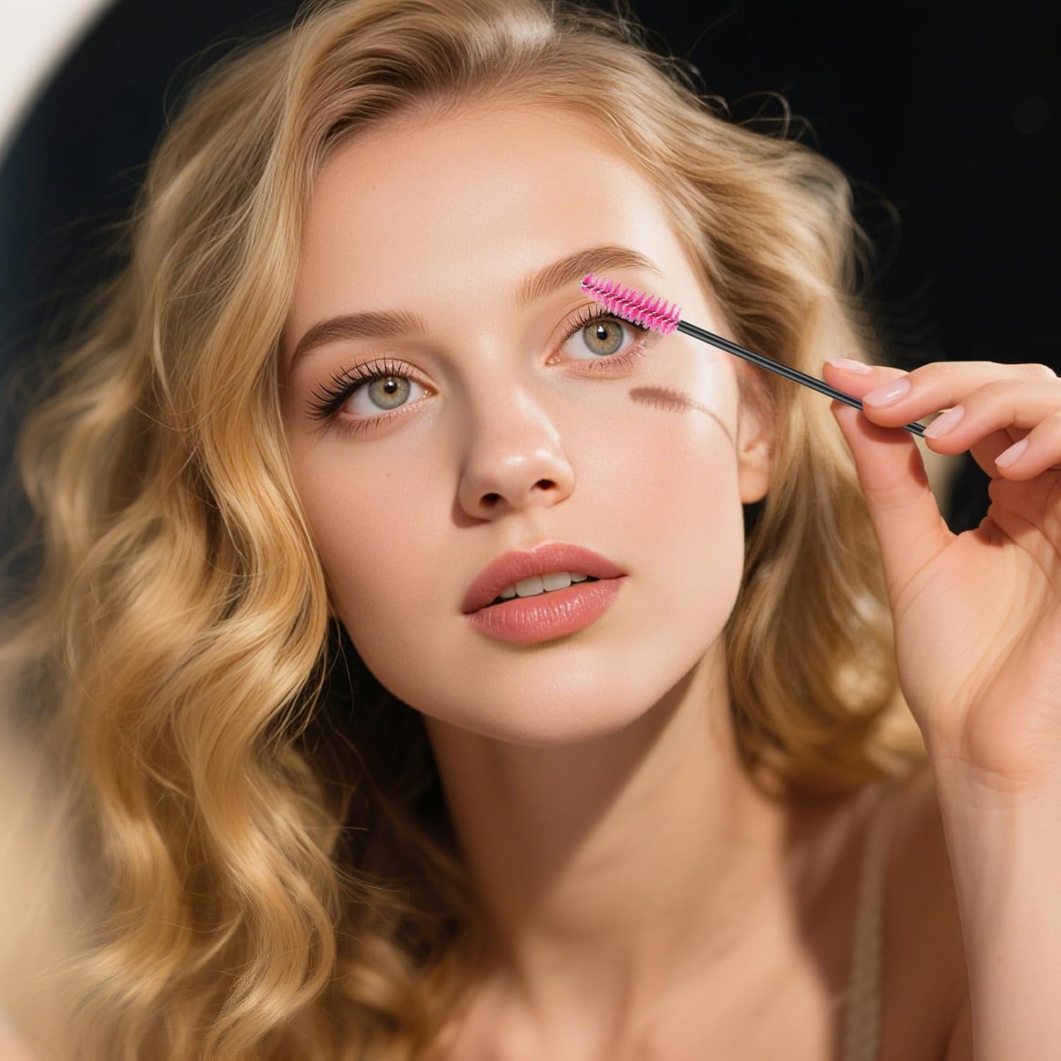 BTYMS 500 Pieces Disposable Mascara Wands Eyelash Brush Brow Brushes Applicators Lash Spoolies for Eye Lash Extension - Rose Pink