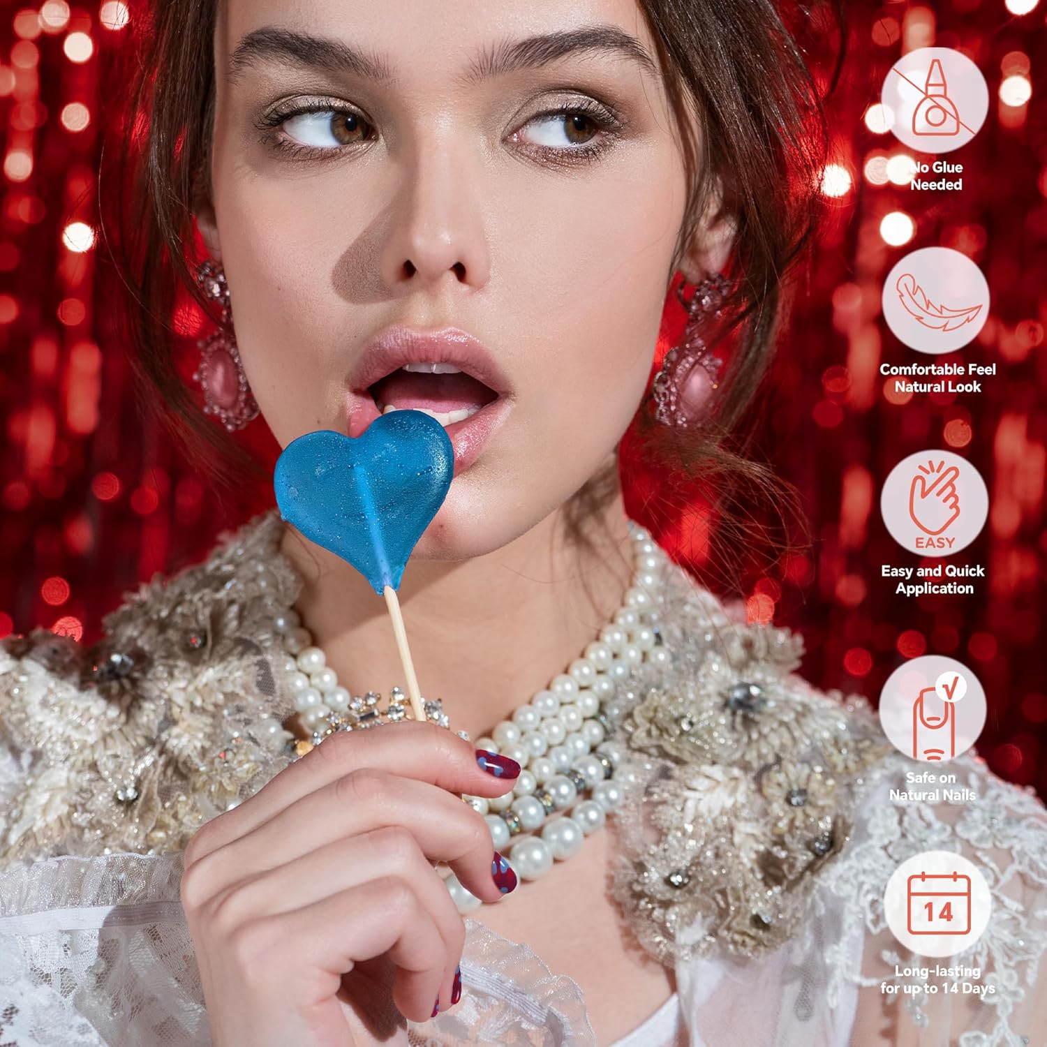 Semi Cured Gel Nail Strips-Salon Quality Semi-Cured Gel Press On Nails Stickers Quick DIY Nail Art Manicure Kits for Women at Home Works with Any UV/LED Lamps(Love Bomb)