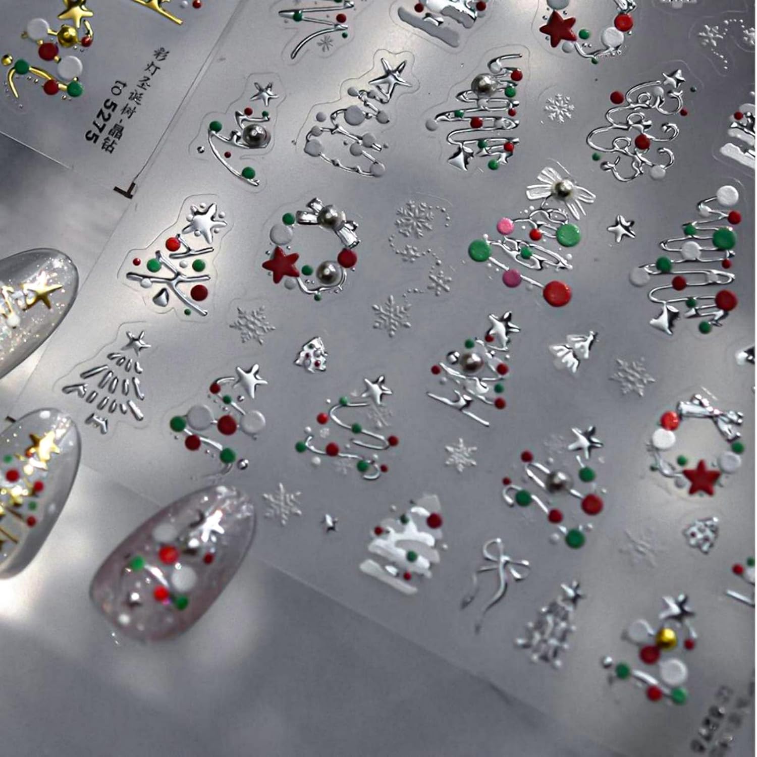 Christmas Nail Stickers Xmas Tree Nail Art Stickers Silver Nail Decals for Nails Art 5D Embossed Self Adhesive Snowflake Nails Art Decals for Women Girls Manicure DIY Decoration Charms Accessories