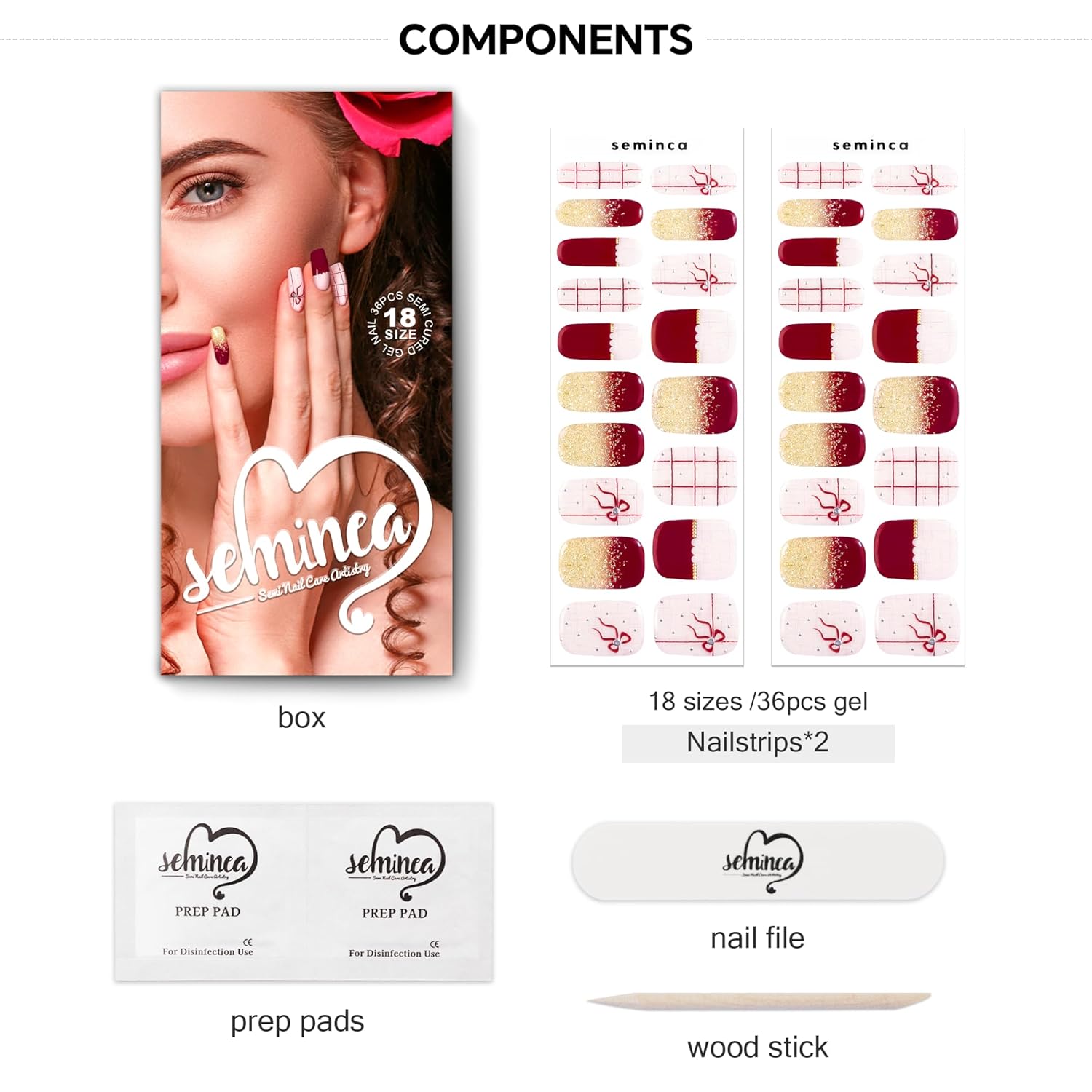Semi Cured Gel Nail Strips-Salon Quality Semi-Cured Gel Press On Nails Stickers Quick DIY Nail Art Manicure Kits for Women at Home Works with Any UV/LED Lamps(Bow Ballet)