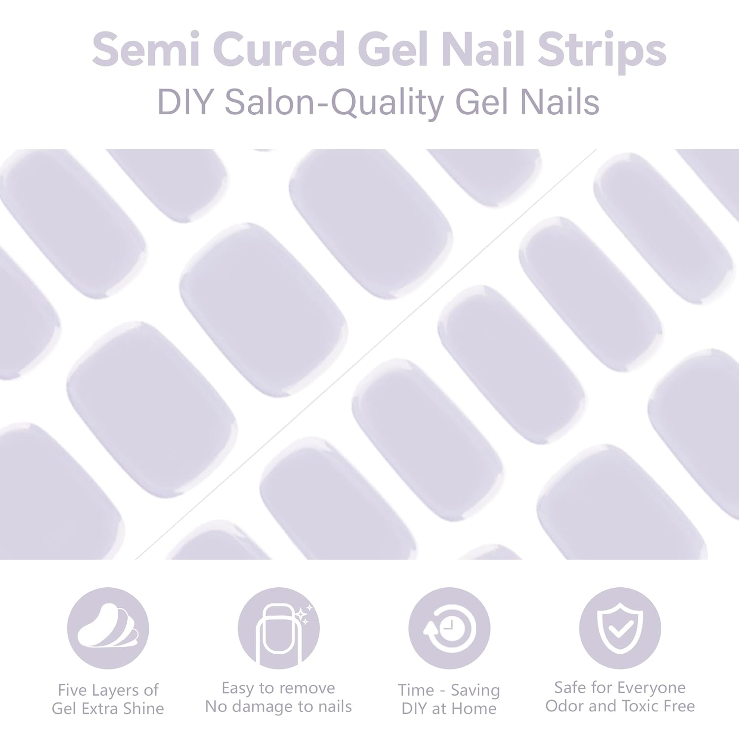 Semi Cured Gel Nail Strips-Salon Look Easy Peel Press On Nails Work Ready Manicure,Long Lasting Glossy Finish for Party/Date Night Crowd Works with Any UV/LED Lamps(Lavender)
