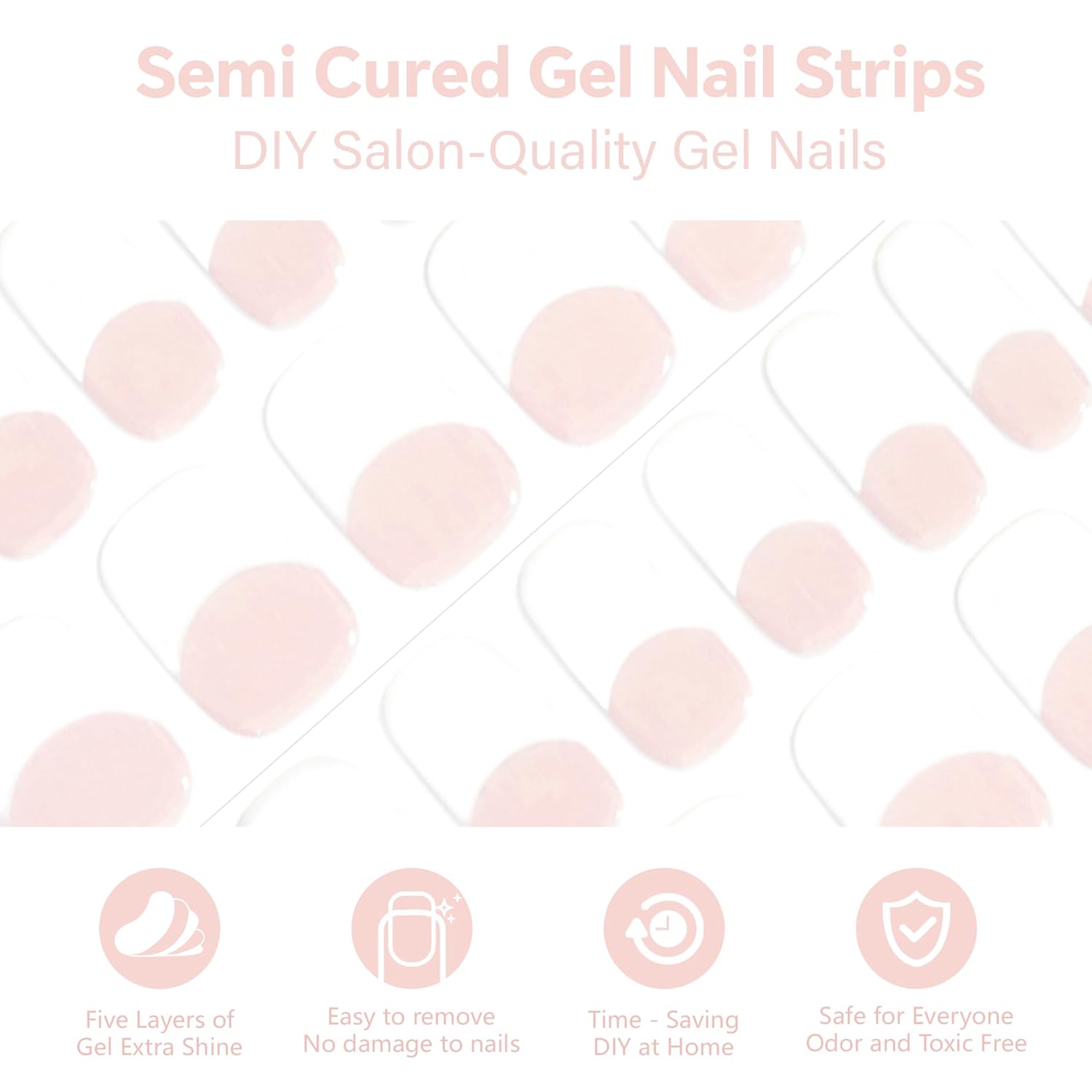 Semi Cured Gel Nail Strips-Semi-Cured Gel Nail Stickers French Tip Quick Press Ons for Busy Women Gym & Sauna Safe,Salon-Quality,Long Lasting Works with Any UV/LED Lamps(Basic French)