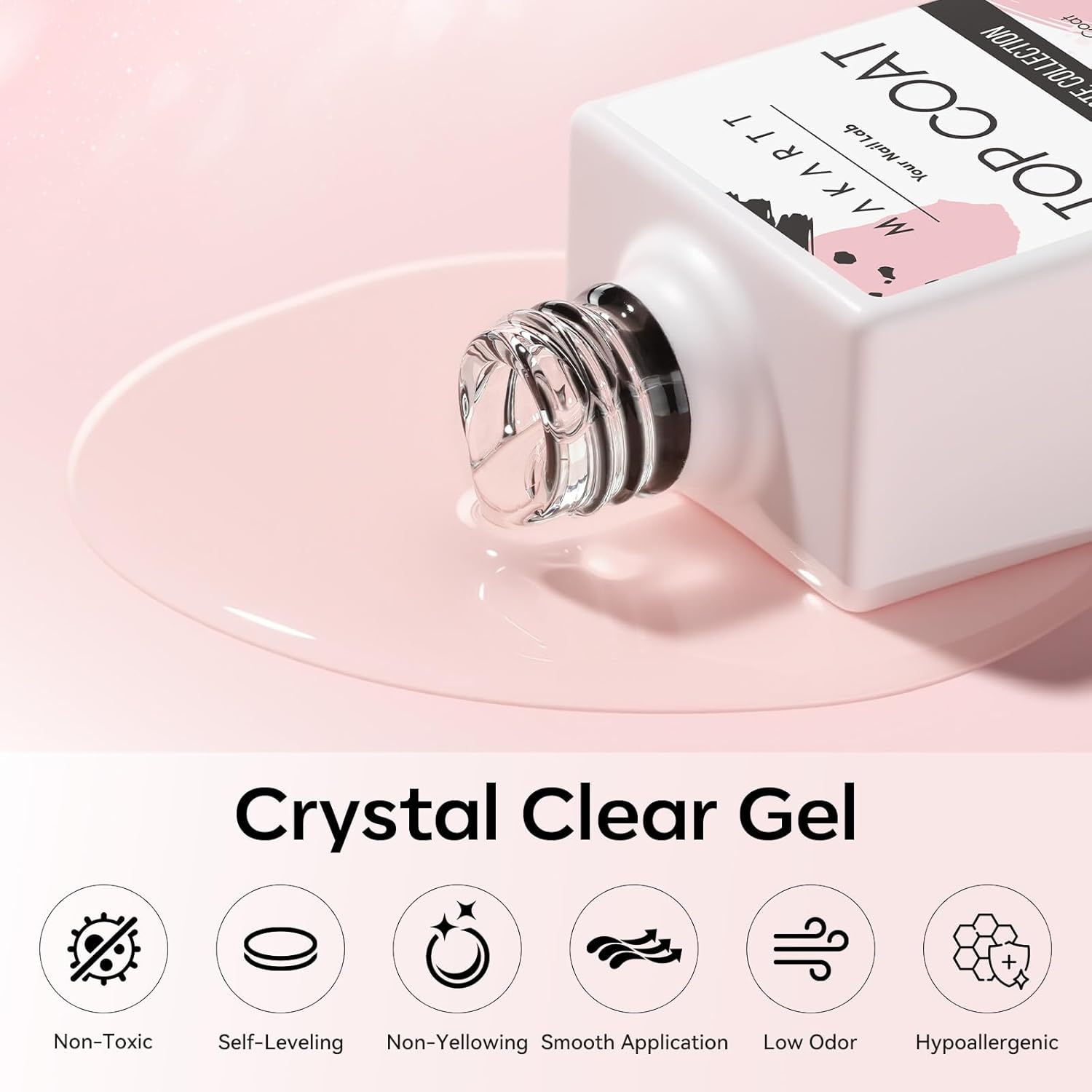 Makartt No Wipe Gel Top and Base Coat Set – Matte & Glossy Finish, 3pcs Soak-Off Long Lasting Gel Nail Polish Essentials, No Yellowing, UV/LED Lamp Required, DIY Nail Art Gift for Women, 10ml
