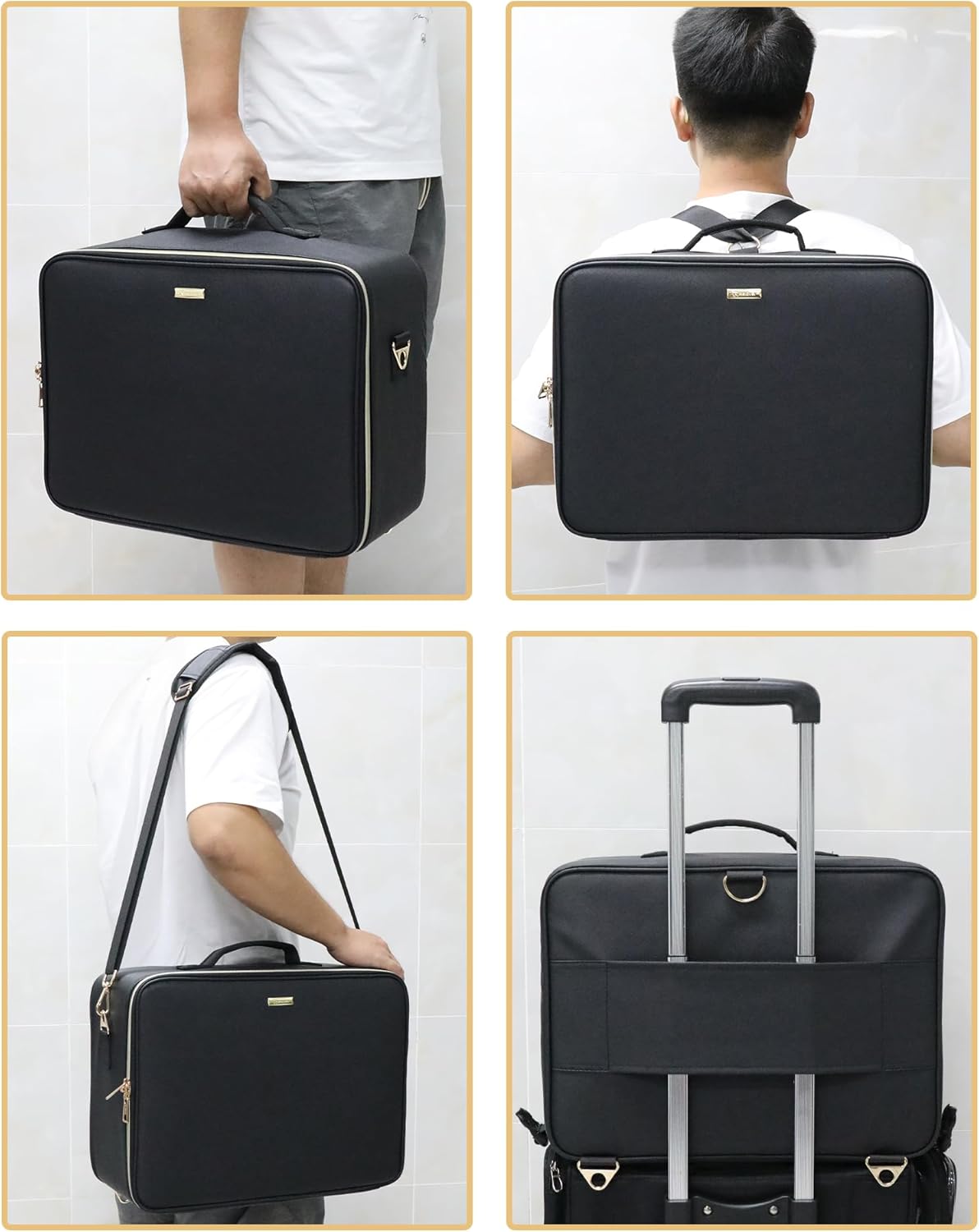 - Easy to Carry: The extra large makeup case comes with a shoulder strap, use it as a shoulder bag, use it as backpack. A luggage strap allows attaching to the trolley case. Free your hands. Build-in shoulder pad for comfortable carry. It offers you an easy way to make up well when you the outside or traveling somewhere.