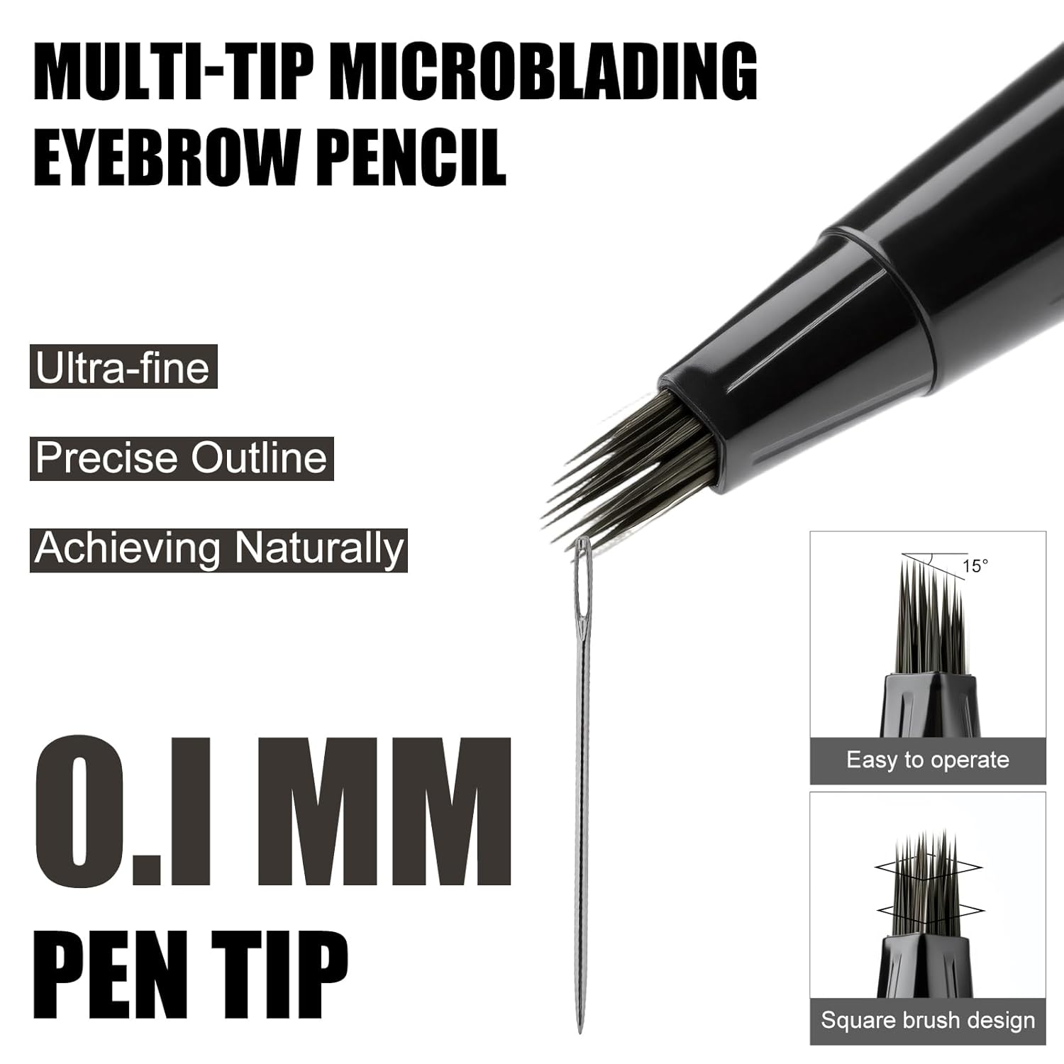 Microblading Eyebrow Pen Hair Stroke Brush, Waterproof Liquid Eyebrow Pencil for Women, Shapes & Fills Hair-Like Looking Brows, 24hrs Long-Lasting, Easy to Use, Multiple Uses, Gifts for Her,Soft Black