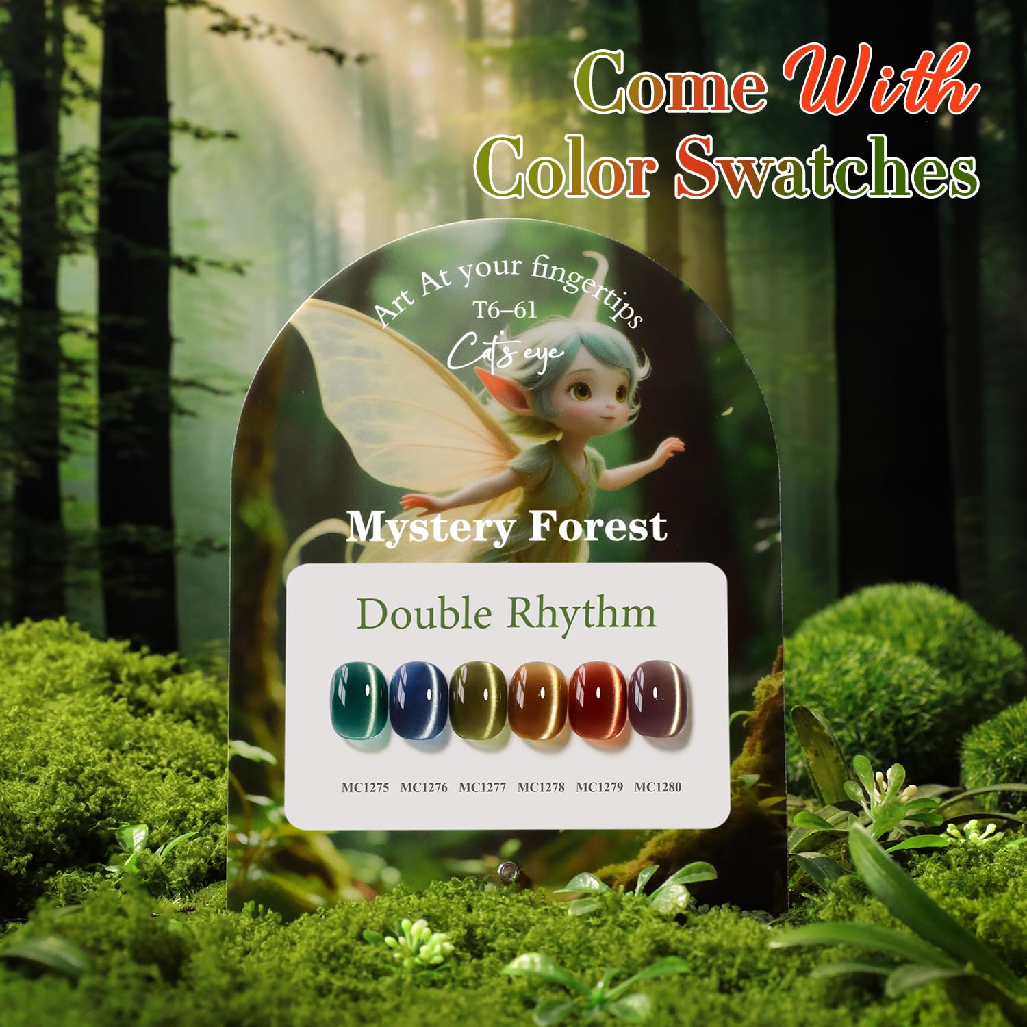 Double Rhythm Cat Eye Gel Nail Polish Set of 6 Same Color Same Bottle 0.5 Oz Shimmer Glitter with Magnet Holographic Reflective Magnetic UV Nail Polish Kit at Home (Green Navy Blue Black-T6-61)
