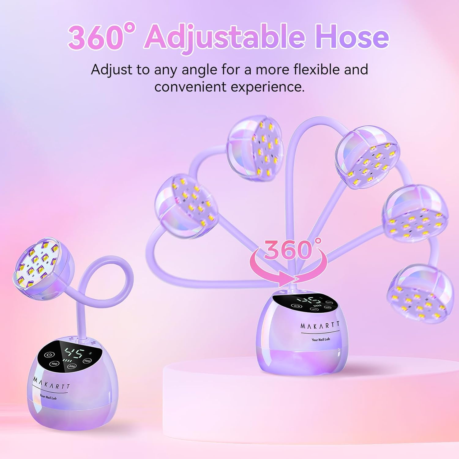 - 360° Degree Adjustable Direction: Makartt UV nail lamp features a flexible gooseneck, allowing you to bend and maneuver it to any angle for optimal curing. It ensures full coverage of gel nails, including hard-to-reach areas like your pinkies and thumbs, for flawless results every time.