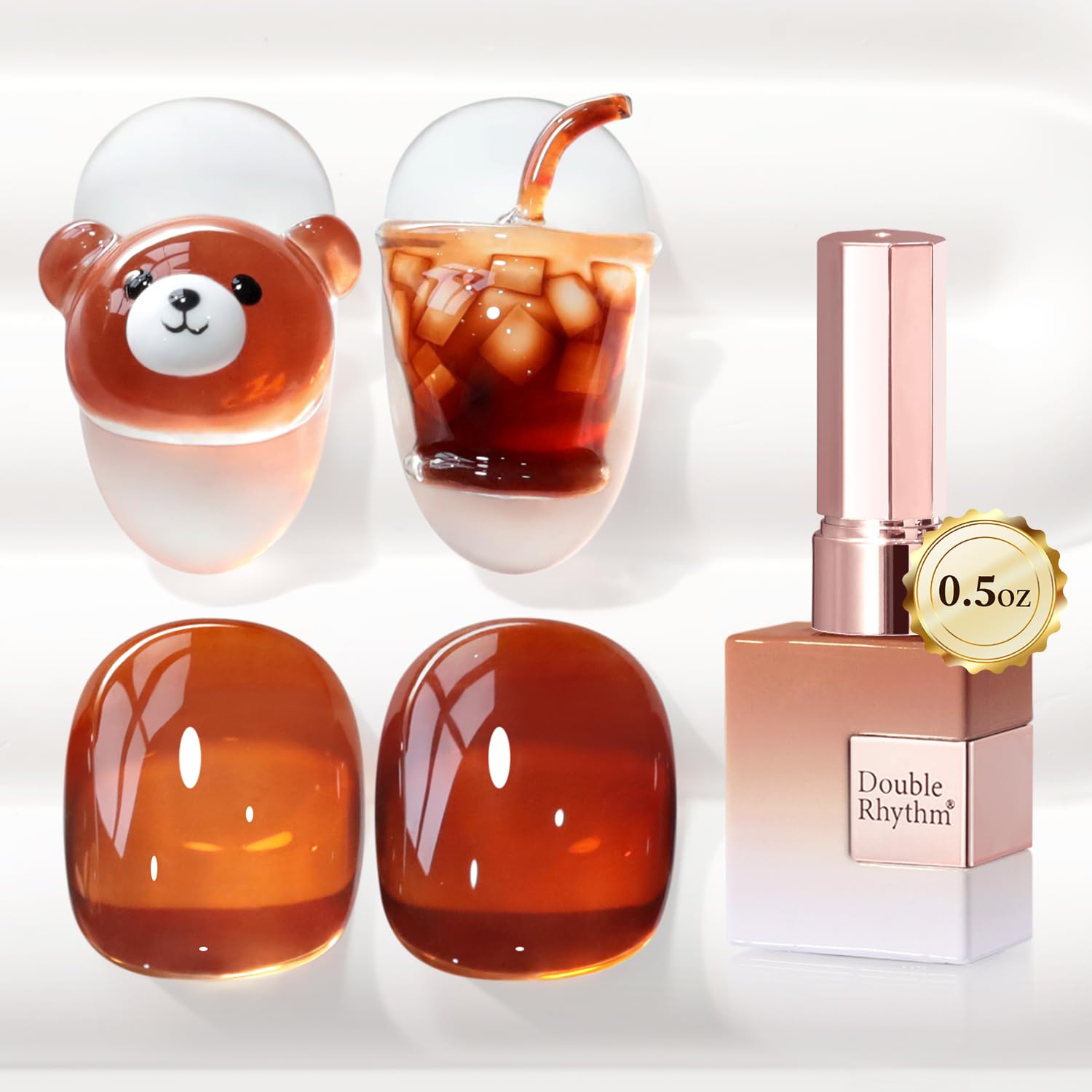 Double Rhythm 0.5 Oz Jelly Gel Polish Same Color Same Bottle Sheer Neutral Natural Light Milky Pastel 15ML Translucent Polish Art DIY at Home (Dark Brown-A1673)