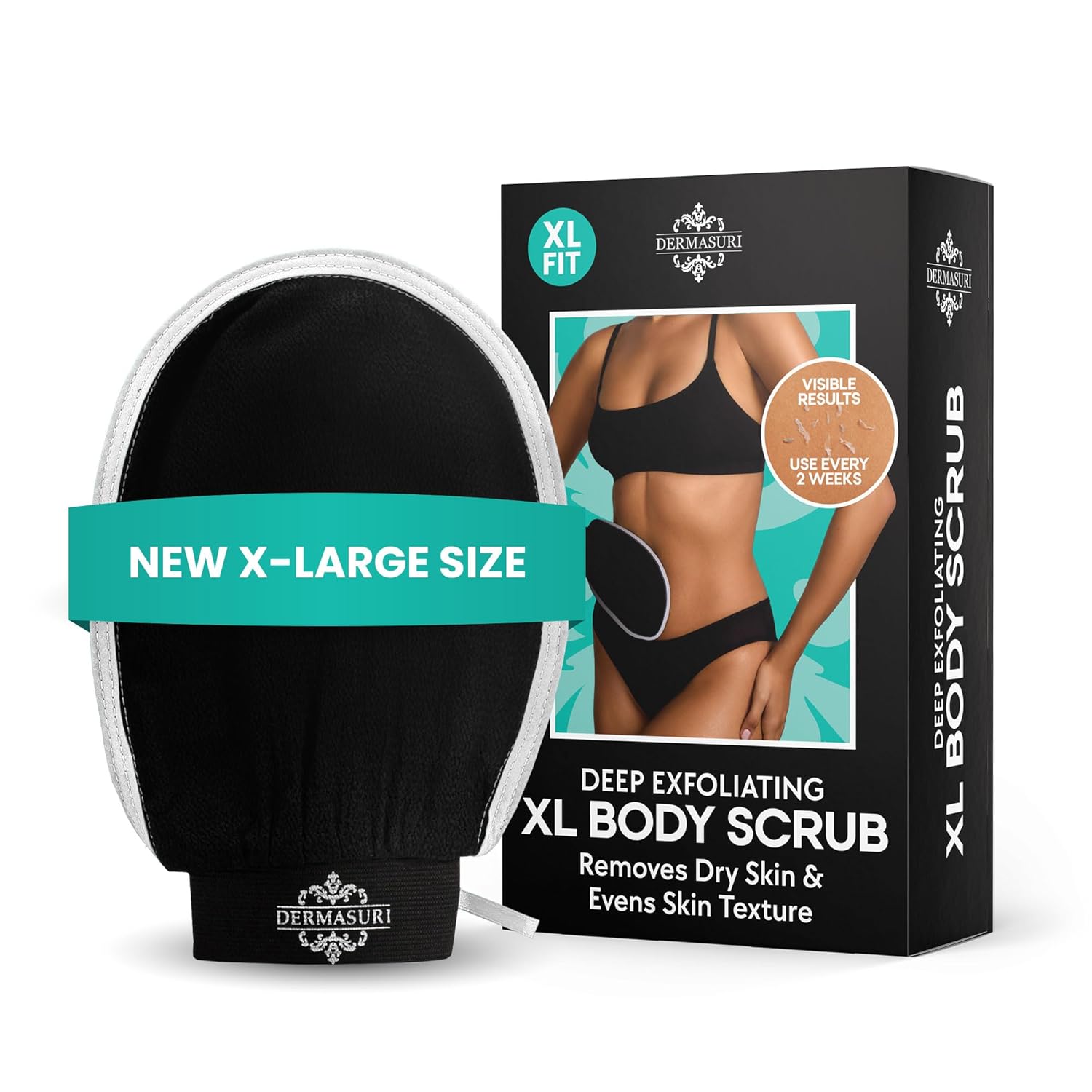Dermasuri Deep Exfoliating Glove – Korean Exfoliating Mitt, Body Scrubber for Shower, Buffs Dry & Dead Skin, Keratosis Pilaris Treatment, Body Scrub, Skin Exfoliator for Men & Women, Reusable - XL