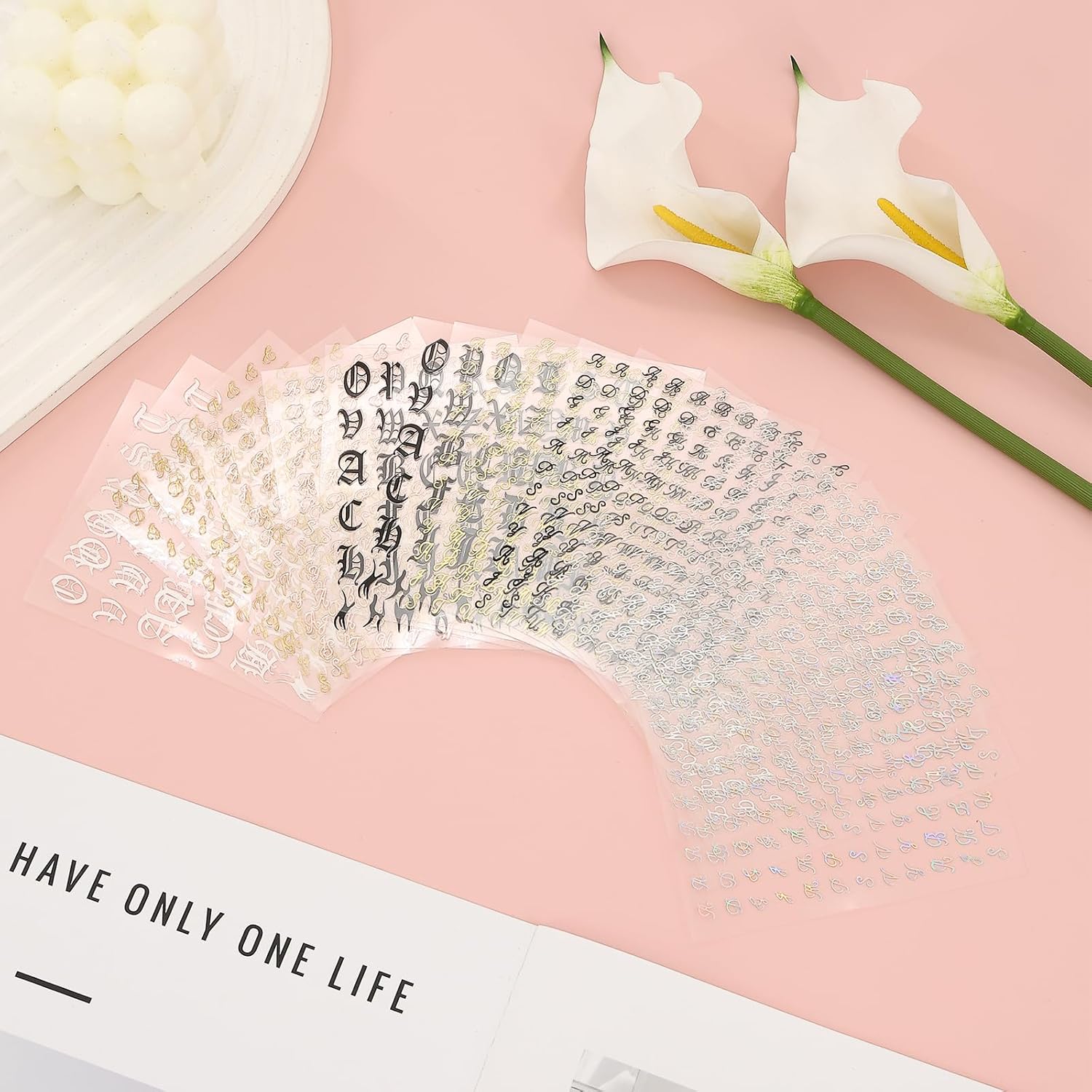 - Easy Application: Our gold nail stickers are self-adhesive, eliminating the need for glue. Using a pair of tweezers, you can easily pick up and place the small letter stickers onto your nails.For extended wear, seal the stickers for nails with a top coat to help your nail art stay in place and maintain its vibrant look.