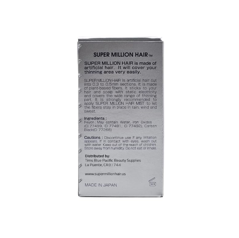 - MADE IN JAPAN- TRUSTED QUALITY SINCE 1986 - Crafted with premium ingredients and decades of expertise, trusted by professionals and individuals worldwide. Super Million Hair, trusted global brand, is the original fiber hair concealer made in Japan.