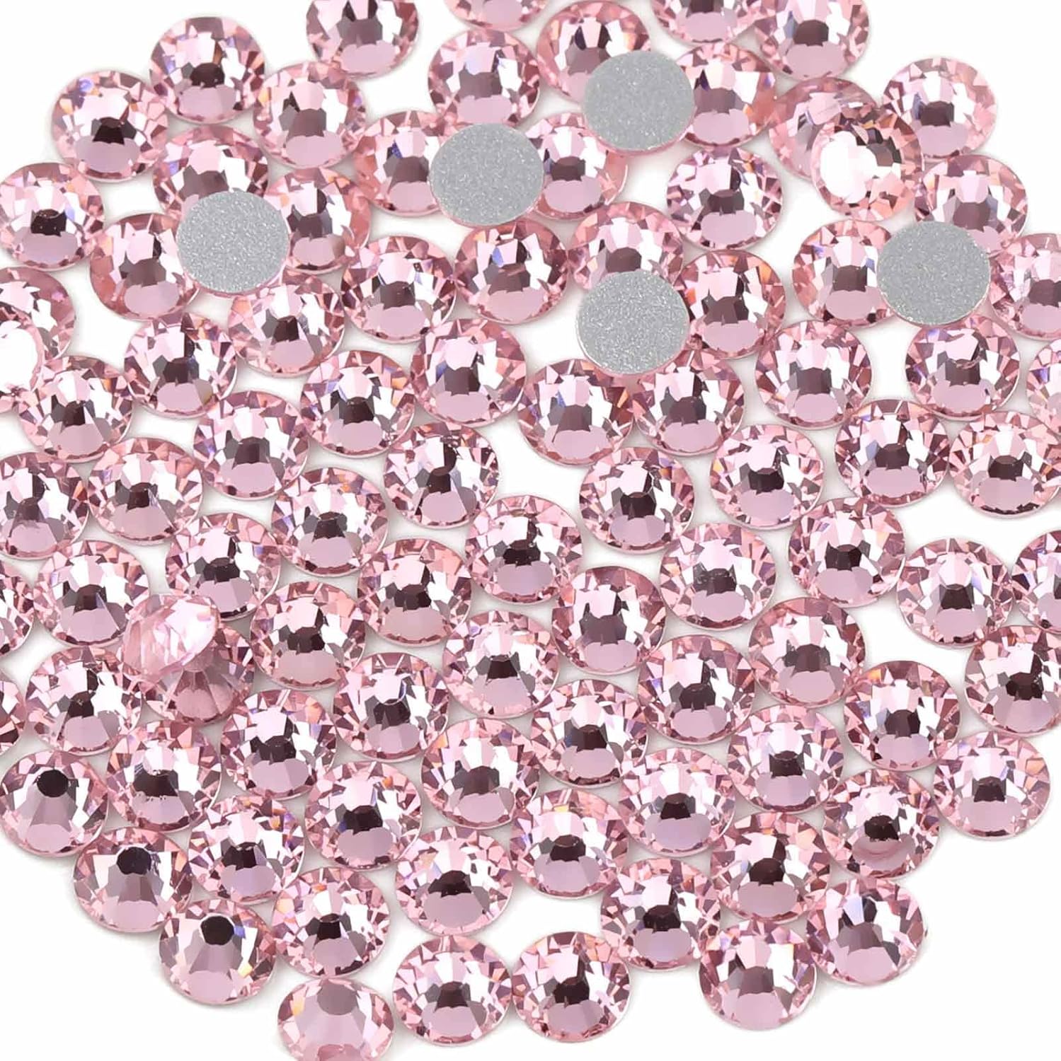 beadsland 144pcs Flat Back Crystal Rhinestones Round Gems for Nail Art and Craft Glue Fix, Light Pink, 10mm, SS50/144pcs