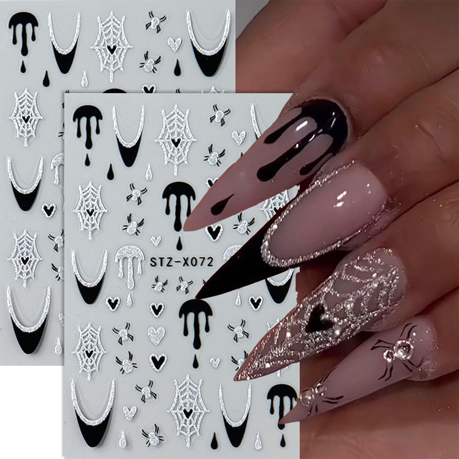 - Quantity: You will get 8 sheets of Halloween glitter nail art stickers, including blood drop and spider web pattern designs, not easy to fall off or fade, can easily create a variety of themed nail art