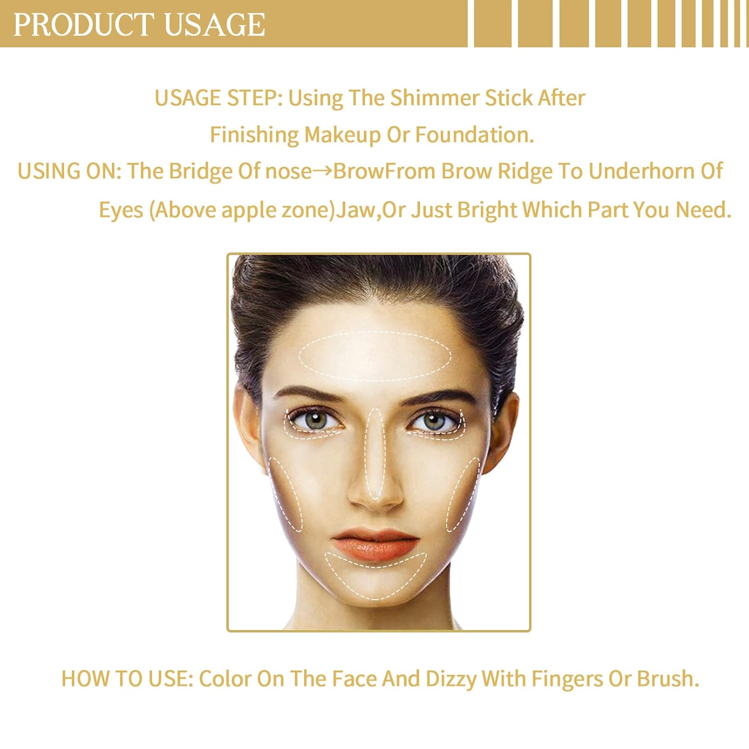 - Multi-Use Highlighter Makeup Stick: This is not only a glitter highlighter makeup stick for face contour improvement, but also can be used as blush and eye highlight to make your skin look moist, light and elegant. With just a highlighter stick, you can easily get your entire face and body makeup done.