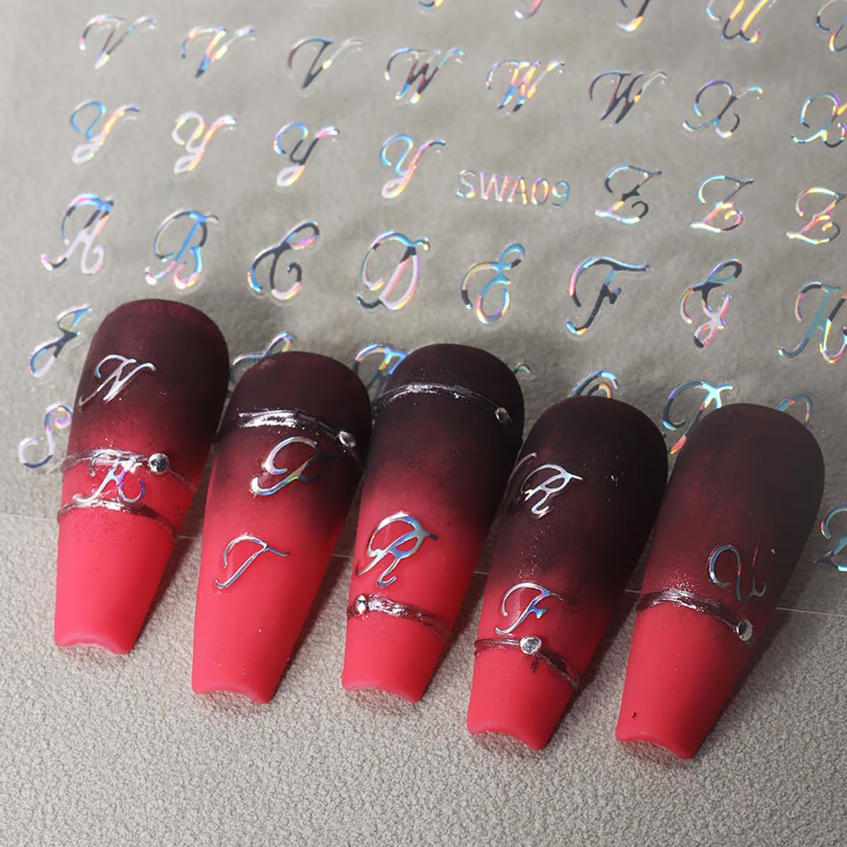 - ăLetter Nail Stickers SetăYou will receive 6pcs different colors of old english letter nail stickers with white, black, gold, silver and other mix color. So many choices that will meet your nail art decorations needs.