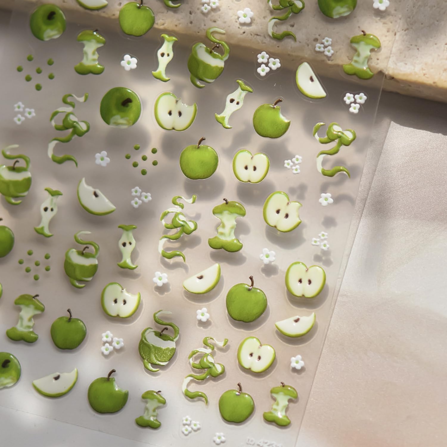 - Quantity:You will get 1 sheet apple nail art stickers decals for nail art,cute green apple flowers nail stickers, 3D self adhesive nail design which can offer you multiple choices, meet your nail decoration needs