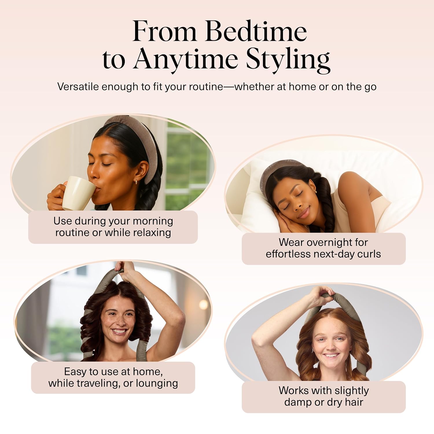 - EFFORTLESS HEATLESS STYLING – Skip the hot tools and protect your hair from damage with this heatless curler set. The soft, flexible heatless curling rod transforms dry or damp strands into bouncy, salon-inspired curls and waves, giving you a healthy, natural-looking style without heat.