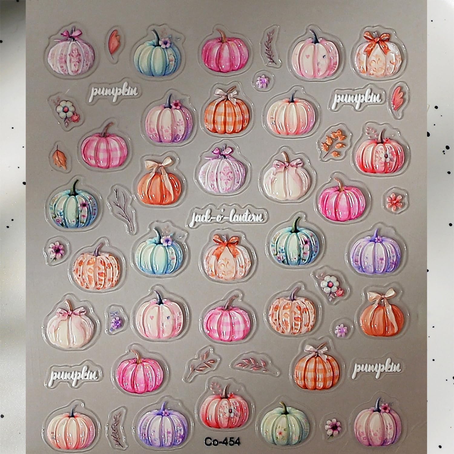- Package Include: You will get 1 sheet Pumpkin nail design stickers in one package. Exquisite fall nail design decoration can provide you with a variety of choices, allowing you to easily DIY your designer nail decoration at home