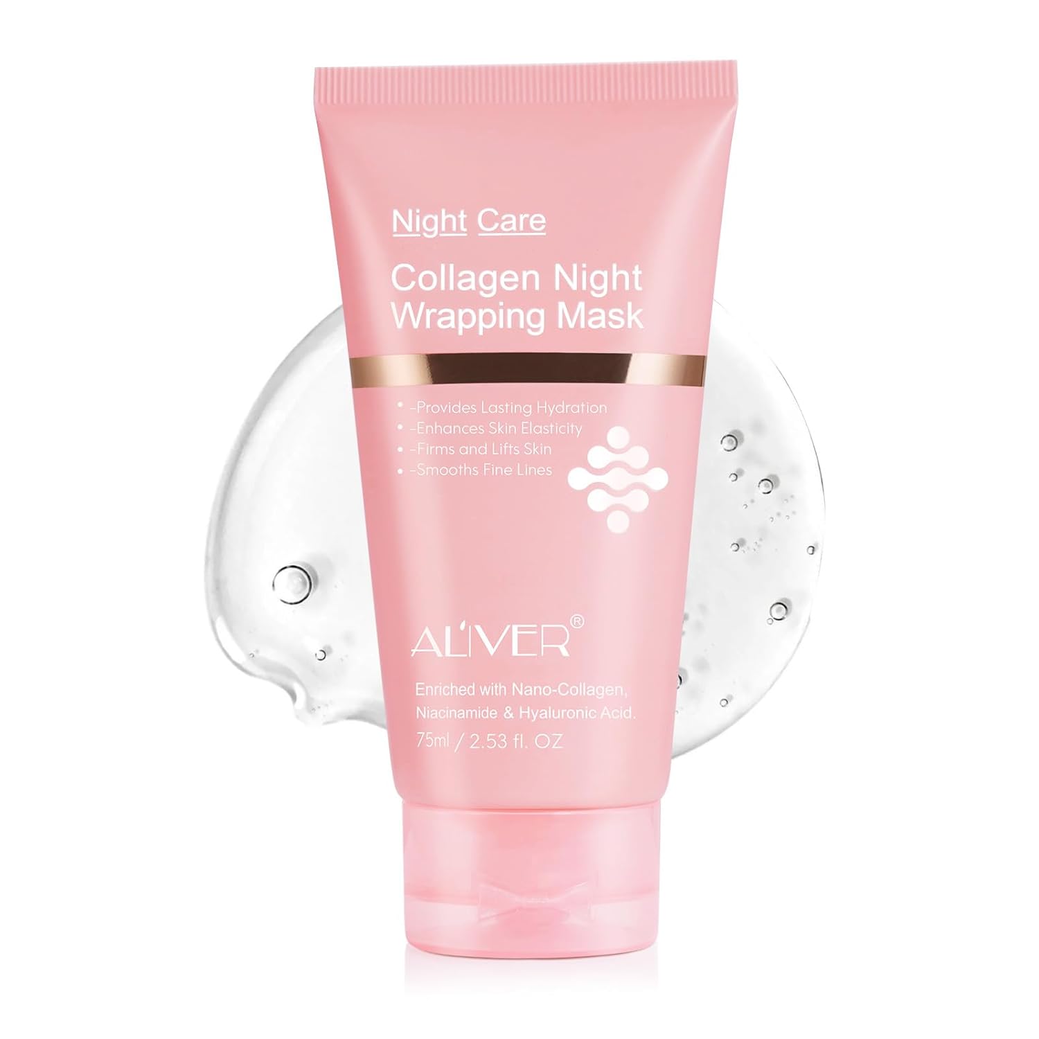 Collagen Overnight Wrapping Peel off Face Mask, Collagen Night Wrapping Mask, Elasticity & Hydration Care, Reduce Fine Lines & Dullness, Anti-aging Skin Care 2.53 fl.oz
