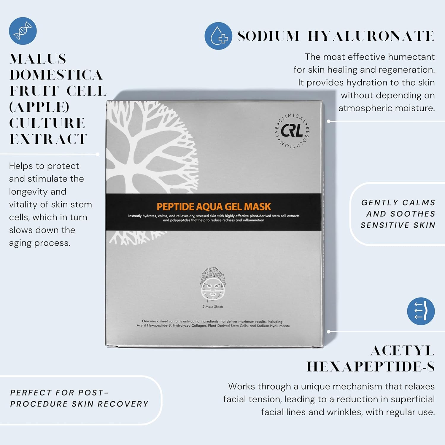 Clinical Resolution Peptide Aqua Gel Mask Instant Hydration, Soothing, Cooling Post-Treatment & Microneedling Relief, 25 Single-Use Masks (5 Boxes, 5 per Box)